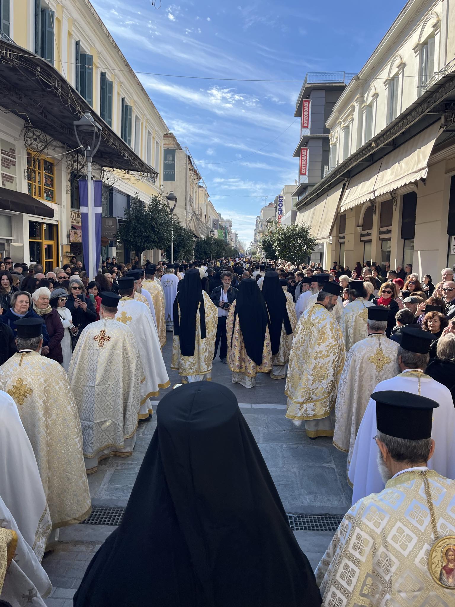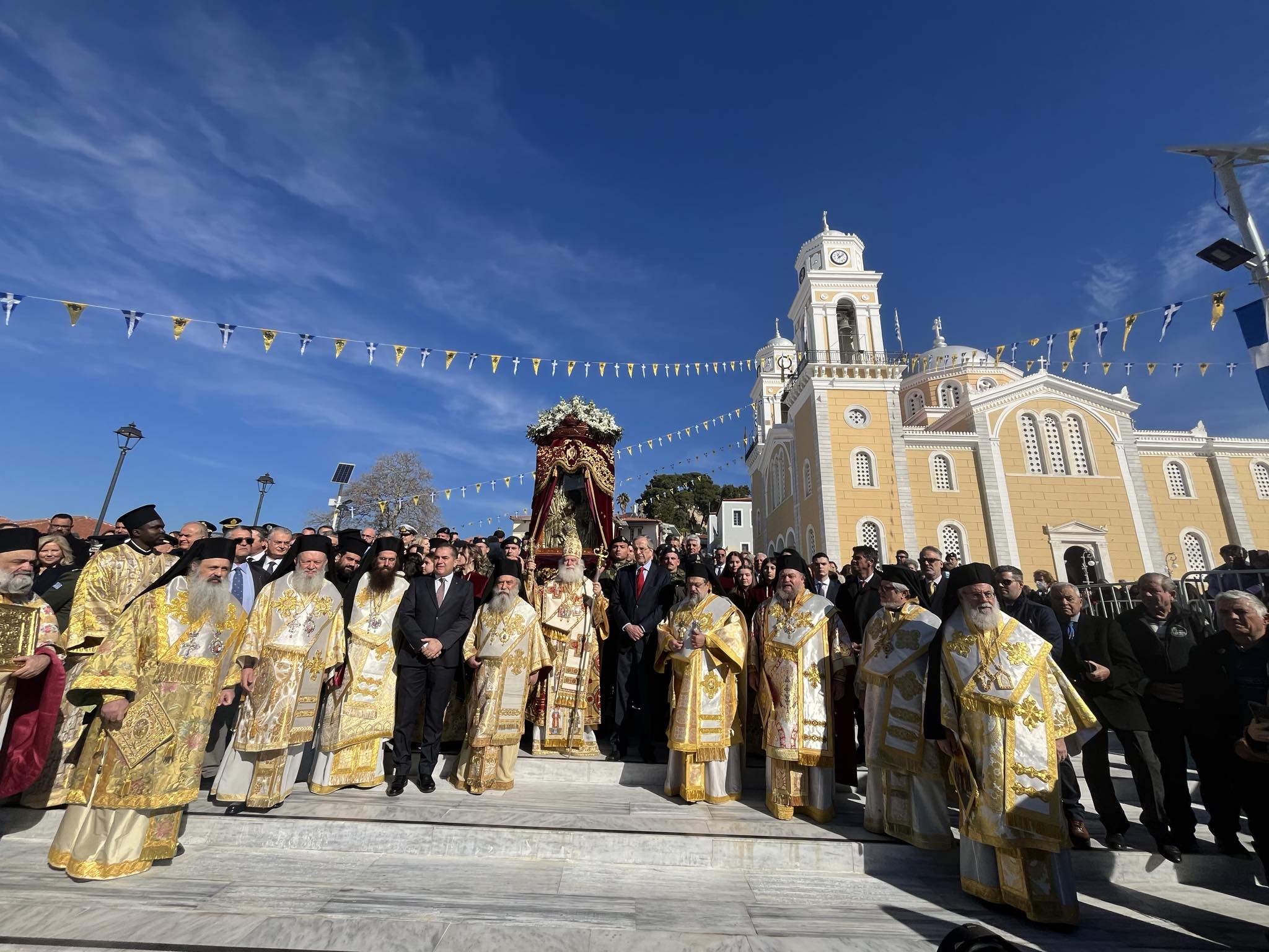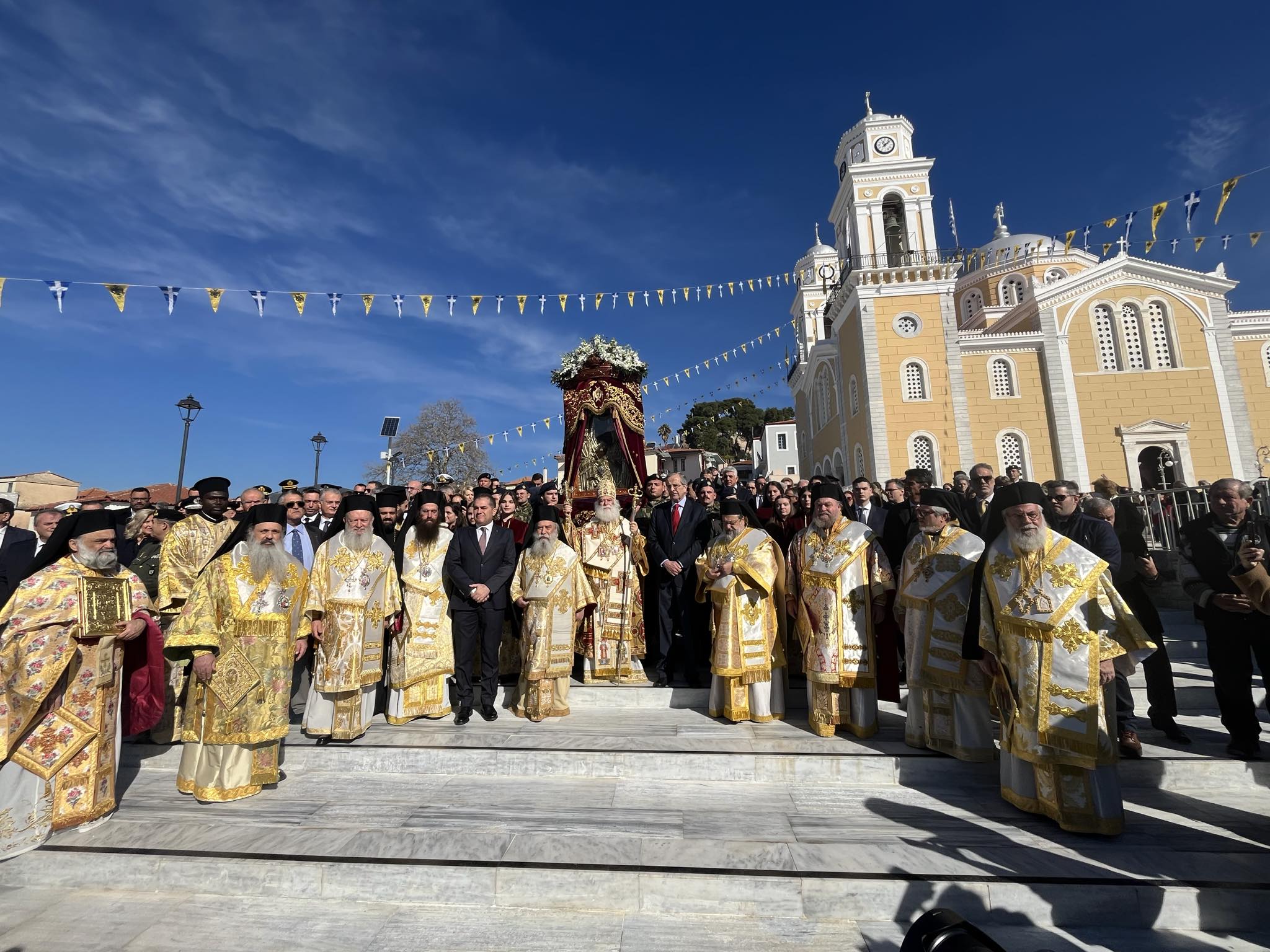 Εχθές, ο Μακαριώτατος χοροστάτησε του πανηγυρικού πολυαρχιερατικού Εσπερινού, με την παρουσία των Σεβ. Μητροπολιτών Γέροντος Λεοντοπόλεως κ. Γαβριήλ, Γουϊνέας κ. Γεωργίου, Καρθαγένης κ. Μελετίου, του Θεοφιλ. Επισκόπου Τολιάρας κ. Προδρόμου, καθώς και των Σεβ. Μητροπολιτών Μονεμβασίας και Σπάρτης κ. Ευσταθίου, Διδυμοτείχου, Ορεστιάδος και Σουφλίου κ. Δαμασκηνού, Χαλκίδος, Ιστιαίας και Βορείων Σποράδων κ. Χρυσοστόμου, Ιλίου, Αχαρνών και Πετρουπόλεως κ. Αθηναγόρου, Μεγάρων και Σαλαμίνος κ. Κωνσταντίνου, Σταγών και Μετεώρων κ. Θεοκλήτου και οικείου Ποιμενάρχου κ. Χρυσοστόμου.
