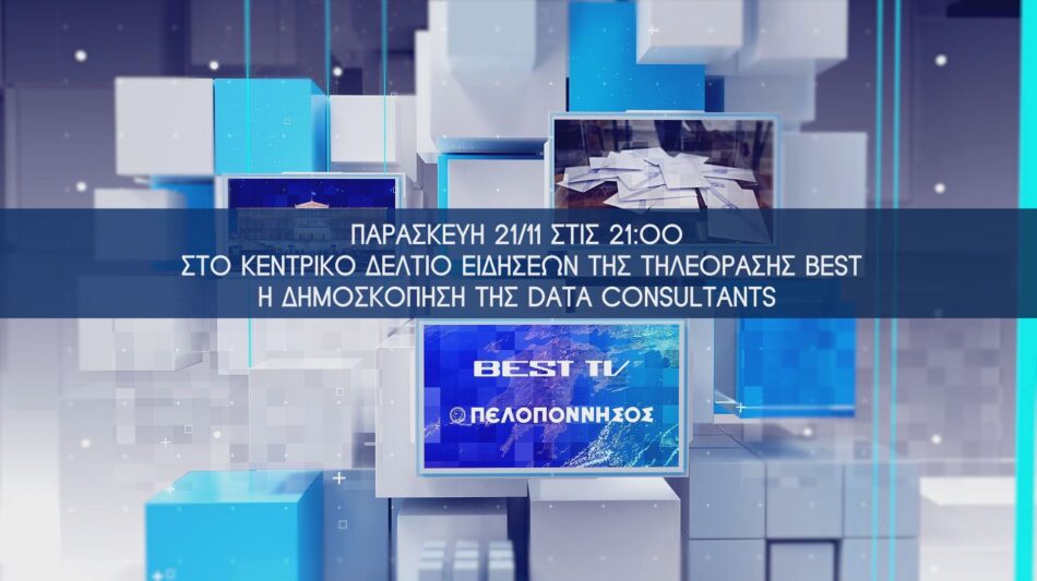 Με μεγάλο ενδιαφέρον αναμένεται η δημοσκόπηση της DATA CONSULTANTS που εξελίχθηκε για λογαριασμό της εφημερίδας «Πελοπόννησος» και της τηλεόρασης BEST, με γεωγραφική αναφορά στην Περιφέρεια Πελοποννήσου.