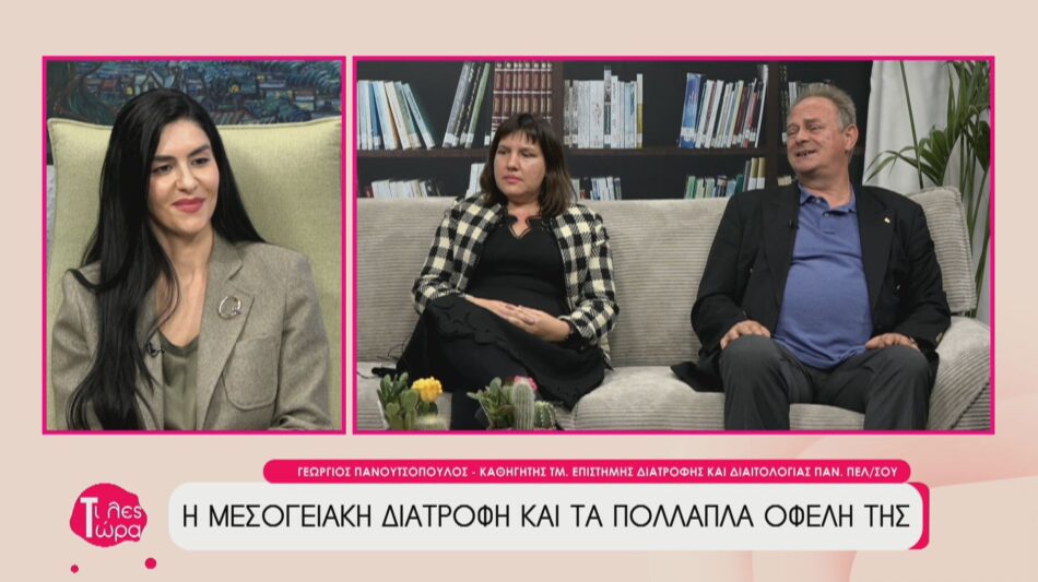 O Γεώργιος Πανουτσόπουλος , καθηγητής Τμήματος Επιστήμης, Διατροφής και Διαιτολογίας του Πανεπιστημίου Πελοποννήσου και η Παρασκευή Ντετοπούλου , Επίκουρη Καθηγήτρια Κλινικής Διαιτολογίας , καλεσμένοι στην εκπομπή ‘’Τι Λες Τώρα’’ με την Αναστασία Μάντζαρη, μίλησαν για την επιτυχημένη εκδήλωση «Έξυπνα Μεσογειακά Σνακ που τα Παιδιά θα Λατρέψουν», που διοργάνωσαν ο Σύλλογος Εστίασης Μεσσηνίας σε συνεργασία με το Τμήμα Επιστήμης, Διατροφής και Διαιτολογίας του Πανεπιστημίου Πελοποννήσου, για τα πολλαπλά οφέλη της Μεσογειακής Διατροφής καθώς και για το τμήμα, τις δράσεις του και την σύνδεσή του με την αγορά εργασίας. Στο πλάίσιο της δράσης εκπαίδευση γονέων στις εργαλιοθήκες ”τροφή για δράση” ,πρόγραμμα του Υπουργείου Υγείας και της Unisef, που θα πραγματoποιηθεί στις 12 Νοεμβρίου 17:00 – 20:00 , οι γονείς μπορούν να δηλώσουν συμμετοχή στο email [email protected]