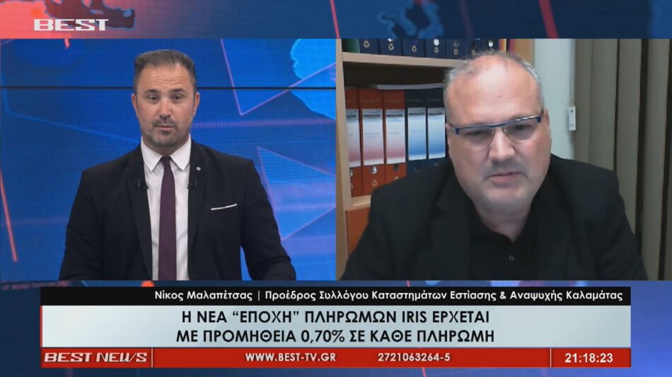 Την έντονη ανησυχία του εκφράζει ο πρόεδρος του Συλλόγου Καταστηματαρχών Εστίασης & Αναψυχής Καλαμάτας σχετικά με τη νέα “εποχή” – όπως την αναφέρει – πληρωμών μέσω IRIS, η οποία παρότι παρουσιάστηκε ως μέτρο μείωσης του κόστους συναλλαγών και ενίσχυσης της ψηφιακής οικονομίας, φαίνεται πως έρχεται να επιβαρύνει περαιτέρω τις επιχειρήσεις.
