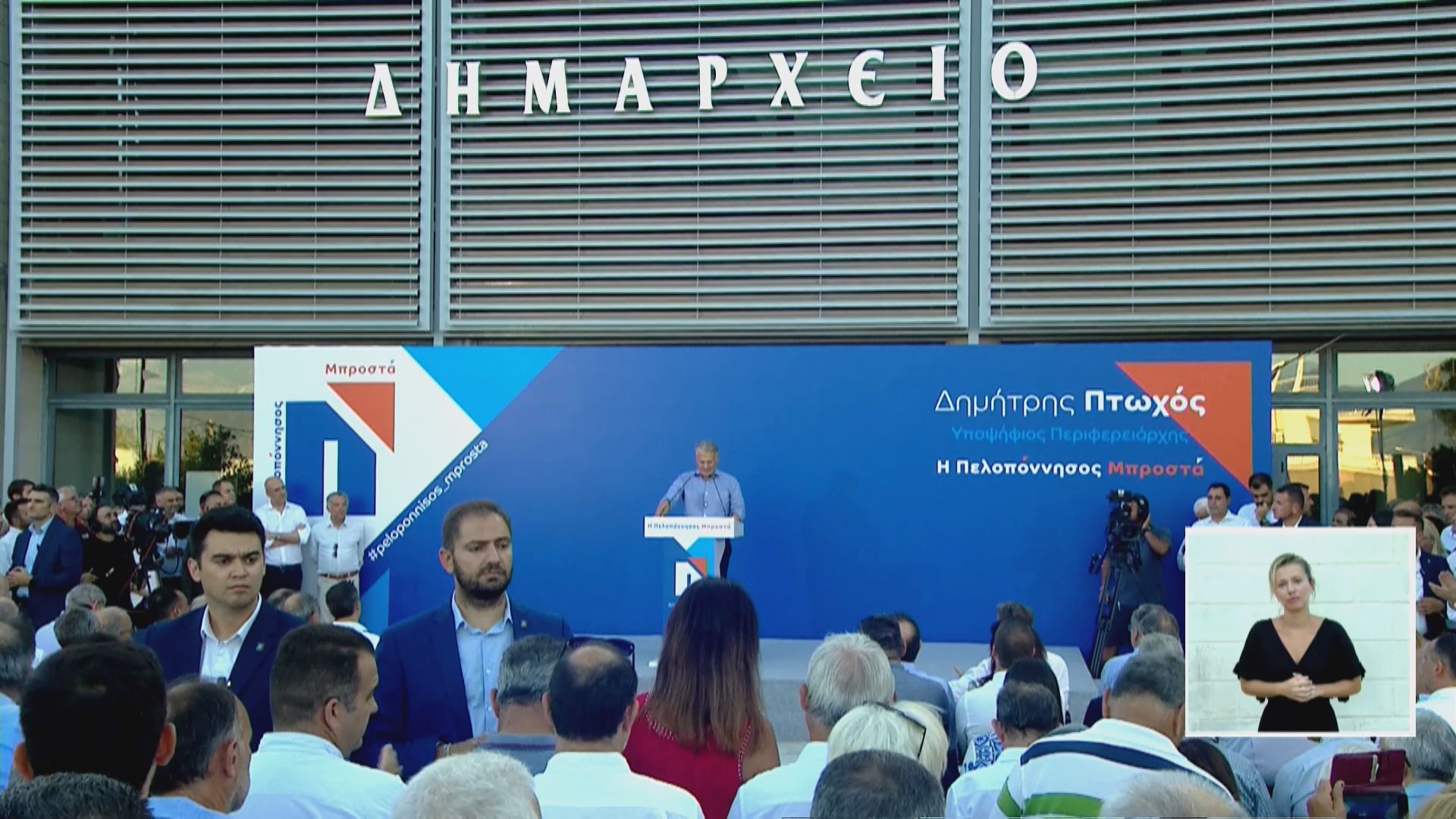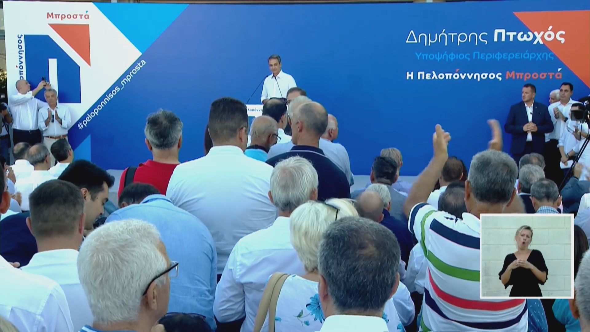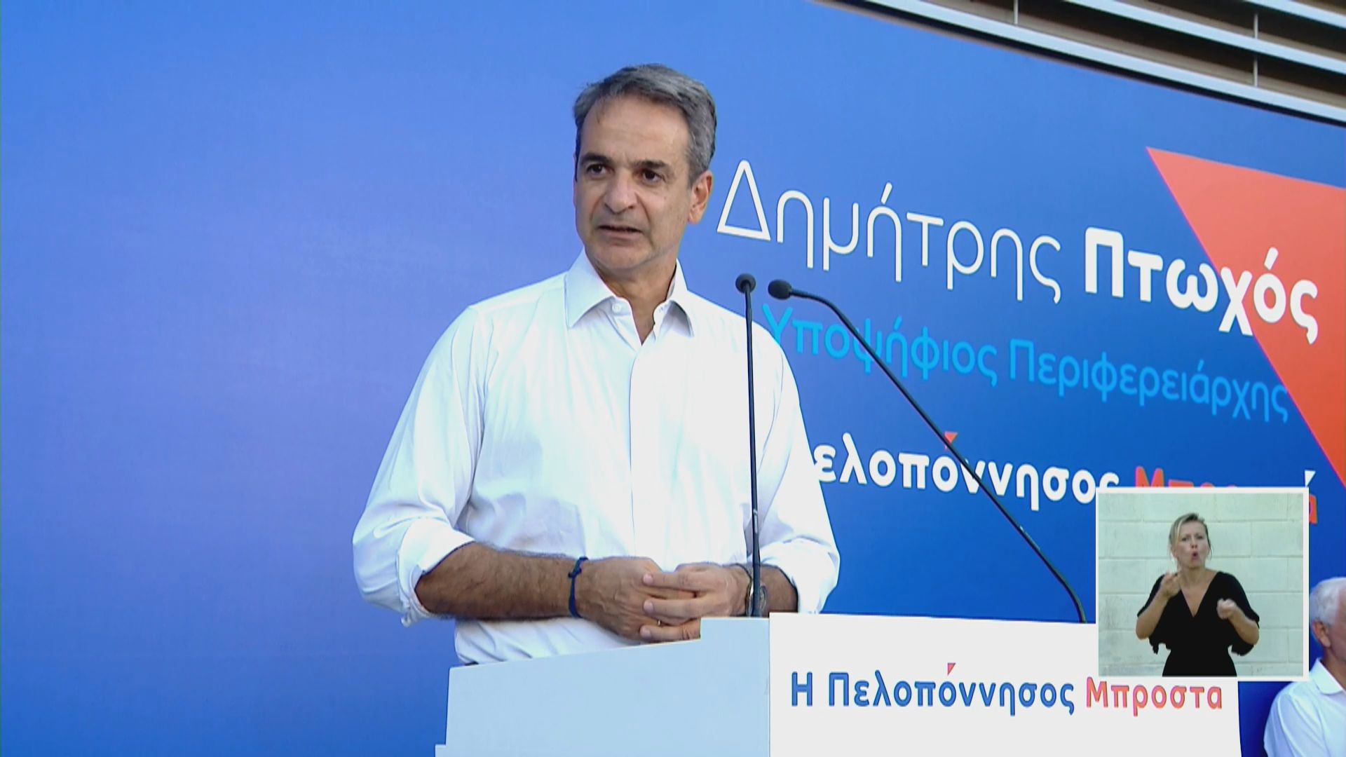 Ο Κυριάκος Μητσοτάκης εξέφρασε την πεποίθησή του για την επιτυχή διεκδίκηση της περιφέρειας Πελοποννήσου από Δημήτρη Πτωχό «Είμαι απόλυτα πεπεισμένος ότι με την στήριξη όλων σας, όλων μας, όλων των κομματικών μηχανισμών και όχι μόνο, είμαι βέβαιος ότι ο Δημήτρης Πτωχός θα είναι ο επόμενος περιφερειάρχης Πελοποννήσου. Για μια Πελοπόννησο με προοπτική και πίστη στις πραγματικές δυνατότητες.»
