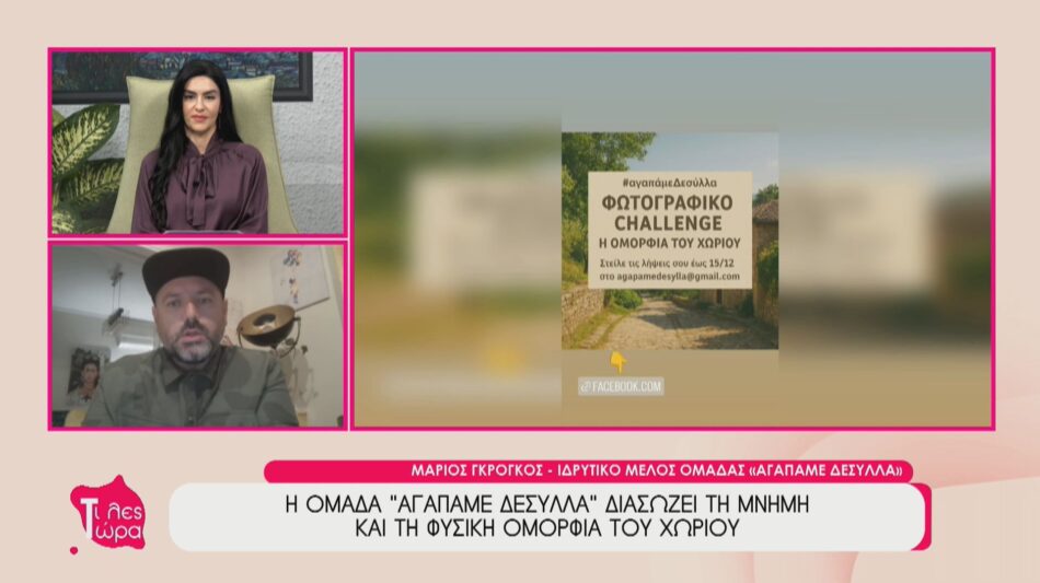 Ο Μάριος Γκρόγκος, ιδρυτικό μέλος της εθελοντικής ομάδας «Αγαπάμε Δεσύλλα» , ήταν καλεσμένος στην εκπομπή «Τι Λες Τώρα» με την Αναστασία Μάντζαρη και μίλησε για τη συνέχιση του οράματος της αναγέννησης του χωριού. Ο κ. Γκρόγκος παρουσίασε τις δύο νέες, πρωτότυπες δράσεις της ομάδας, την πρωτοβουλία «Οι Ιστορίες του Χωριού μας», με στόχο τη συλλογή και καταγραφή των αφηγήσεων των κατοίκων για τη διαφύλαξη της τοπικής μνήμης, και τον Φωτογραφικό Διαγωνισμό «Ο Δεσύλλας μέσα από τα μάτια μας», που αποτυπώνει την ομορφιά και την αρχιτεκτονική του τόπου. Τόνισε πως, μέσα από τον