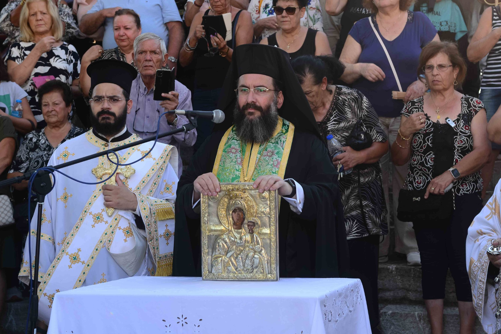 Η λιτανευτική πομπή κατέληξε στο παρεκκλήσιο της Αγίας Παρασκευής όπου ο π. Φίλιππος αφού μετέφερε τις ευχές του Σεβ. Μητροπολίτου Μεσσηνίας κ. Χρυσοστόμου, αναφέρθηκε στο οκταήμερο προσκύνημα της Ιεράς Εικόνος, τονίζοντας ότι δεν είναι ένα έθιμο αλλά μια έκφραση ανάγκης του πιστού λαού της Μεσσηνίας να επικοινωνήσει με την Υπεραγία Θεοτόκο και να γίνει επήκοος των προσευχών μας , ενώ κάλεσε τους πιστούς να προσευχηθούν θερμά για την επικράτηση της ειρήνης στις εμπόλεμες περιοχές της Ουκρανίας και της Λωρίδας της Γάζας.