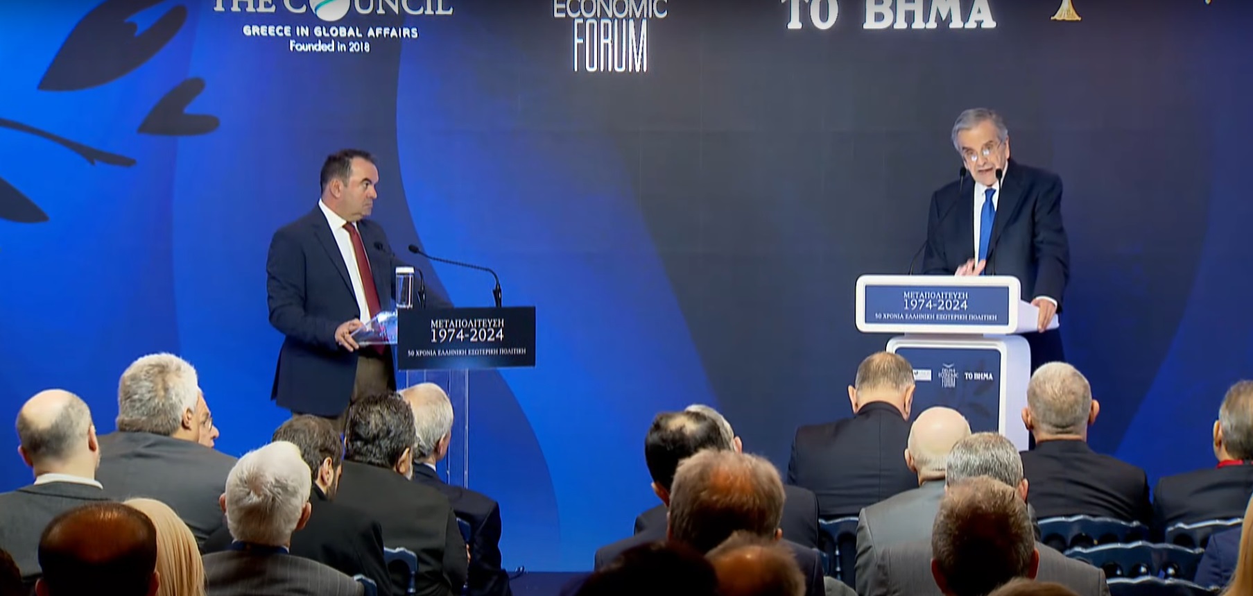 Ο πρώην πρωθυπουργός μιλά στο συνέδριο που διοργανώνει η εφημερίδα «Το Βήμα» (12 και 13 Δεκεμβρίου) σε συνεργασία με το Συμβούλιο Διεθνών Σχέσεων και το Οικονομικό Φόρουμ των Δελφών με θέμα την πορεία της ελληνικής εξωτερικής πολιτικής στα πενήντα χρόνια της Μεταπολίτευσης.