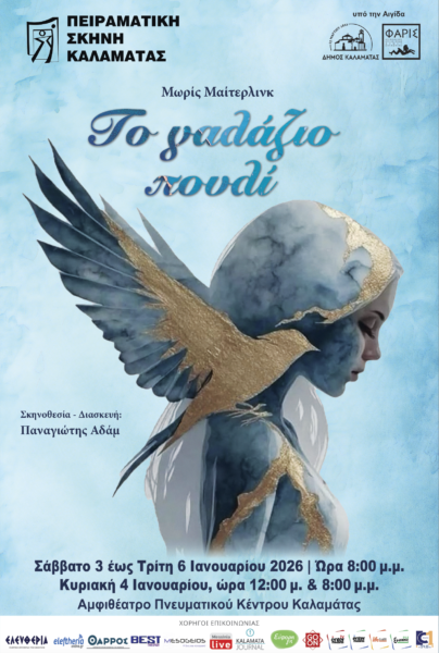 Η επόμενη δράση της Πειραματικής Σκηνής είναι η θεατρική παράσταση από την εφηβική θεατρική ομάδα του συλλόγου με το έργο του Νομπελίστα συγγραφέα Μωρίς Μαίτερλινκ “Το γαλάζιο πουλί” στις 3-6 Ιανουαρίου 2026 στο Πνευματικό Κέντρο Καλαμάτας.