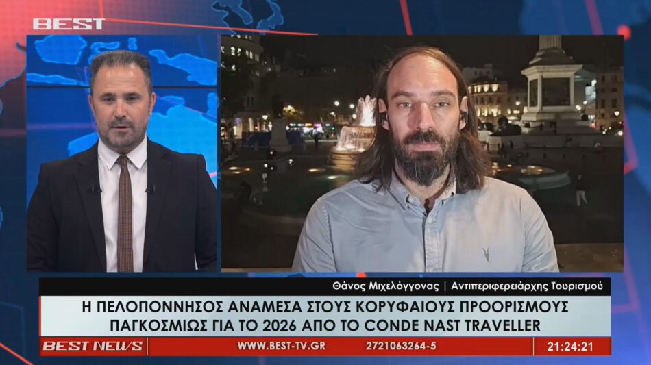 Μιλώντας στο Κεντρικό Δελτίο Ειδήσεων της τηλεόρασης BEST ο Αντιπεριφερειάρχης Τουρισμού Θάνος Μιχελλόγγονας σημείωσε «Έχουμε στόχο να μεγαλώσουμε την παρουσία μας. Η αγορά της Μεγάλης Βρετανίας είναι μια από τις παραδοσιακές αγορές που έχουμε μεγάλα περιθώρια βελτίωσης. Η στρατηγική μας έχει πολλές συνδυασμένες ενέργειες άρα πέρα από τη δημοσιότητα που πετύχαμε ως ένας από τους κορυφαίους προορισμούς για το 2026 σήμερα είχαμε την υπογραφή μνημονίου συνεργασίας με τον ΕΟΤ και τους Adventures Travel Trade Associaton τη νούμερο 1 αναφορά στο κόσμο στο κομμάτι του τουρισμού περιπέτειας. Υπογράψαμε το μνημόνιο συνεργασίας για να υλοποιήσουμε το καλοκαίρι του 2026 στην Πελοπόννησο ένα από τα “signature events” ο ΕΟΤ μας υποστηρίζει σε αυτό και το 2026 στην Πελοπόννησο θα έχουμε μερικά από τα κορυφαία media που ασχολούνται με τον τουρισμό περιπέτειας στον κόσμο… Ταυτόχρονα και κάναμε πάρα πολλά ραντεβού με επαγγελματίες του κλάδου με διεθνείς εταιρείες για τον διεθνή αερολιμένα Καλαμάτας με πολύ καλά αποτελέσματα για το 2026».