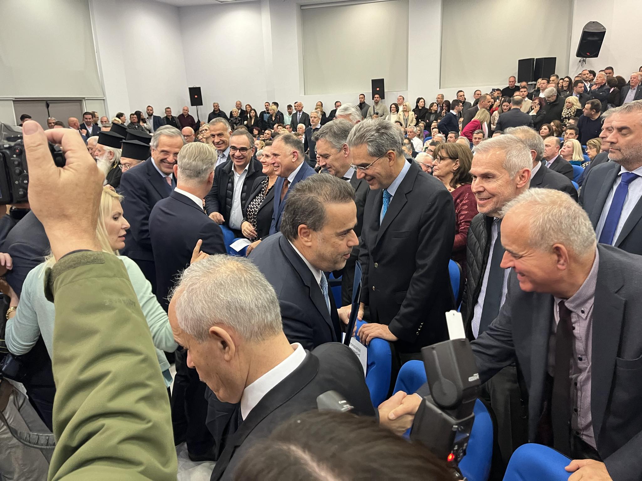 Υπουργοί, βουλευτές, η ηγεσία της ΚΕΔΕ, δήμαρχοι, αυτοδιοικητικοί, εκπρόσωποι φορέων και απλός κόσμος πλημμύρισαν το αμφιθέατρο του Μουσικού Σχολείου Τρίπολης, με την παρουσία του πρώην πρωθυπουργού Αντώνη Σαμαρά να ξεχωρίζει. Σημαντική η παρουσία του Υπουργού Επικράτειας Σταύρου Παπασταύρου που εμφανώς συγκινημένος στάθηκε στην προσωπικότητα και την αξία του Δημήτρη Πτωχού τονίζοντας την αισιοδοξία του πως η Πελοπόννησος θα γίνει πρότυπο.
