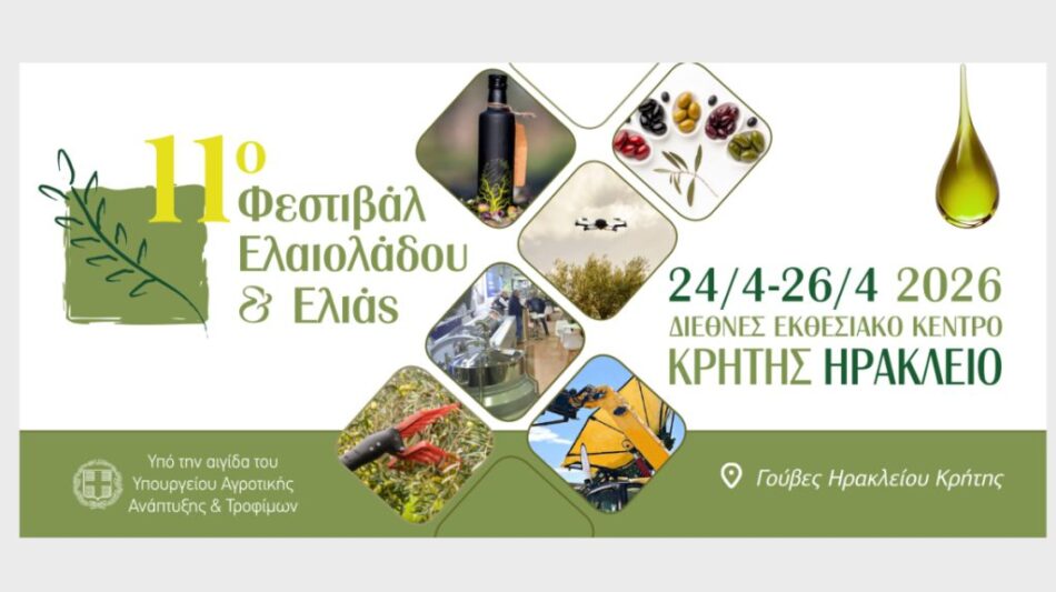 Η Περιφέρεια Πελοποννήσου, στο πλαίσιο της στρατηγικής της για την προώθηση των ποιοτικών αγροδιατροφικών προϊόντων της Πελοποννήσου και την ενίσχυση της εξωστρέφειας των τοπικών επιχειρήσεων, προσκαλεί τις επιχειρήσεις του ελαιοκομικού κλάδου να συμμετάσχουν στο 11ο Φεστιβάλ Ελαιολάδου και Ελιάς, που θα πραγματοποιηθεί στις 24-26 Απριλίου 2026 στο Ηράκλειο Κρήτης, Διεθνές Εκθεσιακό Κέντρο Κρήτης, Περιφερειακή Ενότητα Ηρακλείου.