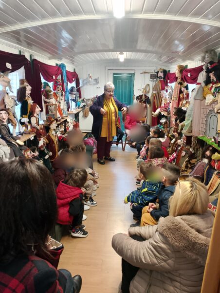 Την Τετάρτη 10 Δεκεμβρίου 2025, το πρωί, τα Νηπιαγωγεία Άρι και Σπερχογείας με τις δασκάλες τους ξεναγήθηκαν στο τρένο με τις κούκλες της Πειραματικής Σκηνής Καλαμάτας . Γνώρισαν από κοντά τις κούκλες-ήρωες των παραμυθιών που στεγάζονται εκεί.