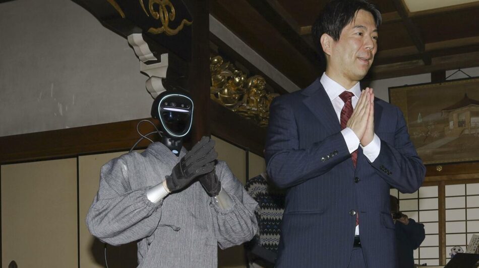 Το Πανεπιστήμιο του Κιότο, στην Ιαπωνία, παρουσίασε χθες, Τρίτη, έναν ρομποτικό μοναχό με ενσωματωμένη τεχνητή νοημοσύνη και εκπαιδευμένο σε βουδιστικές γραφές, ο οποίος οι προγραμματιστές του ελπίζουν ότι θα είναι σε θέση να βοηθά τους μοναχούς ή να ενεργεί εκ μέρους τους κατά τη διάρκεια θρησκευτικών λειτουργιών.