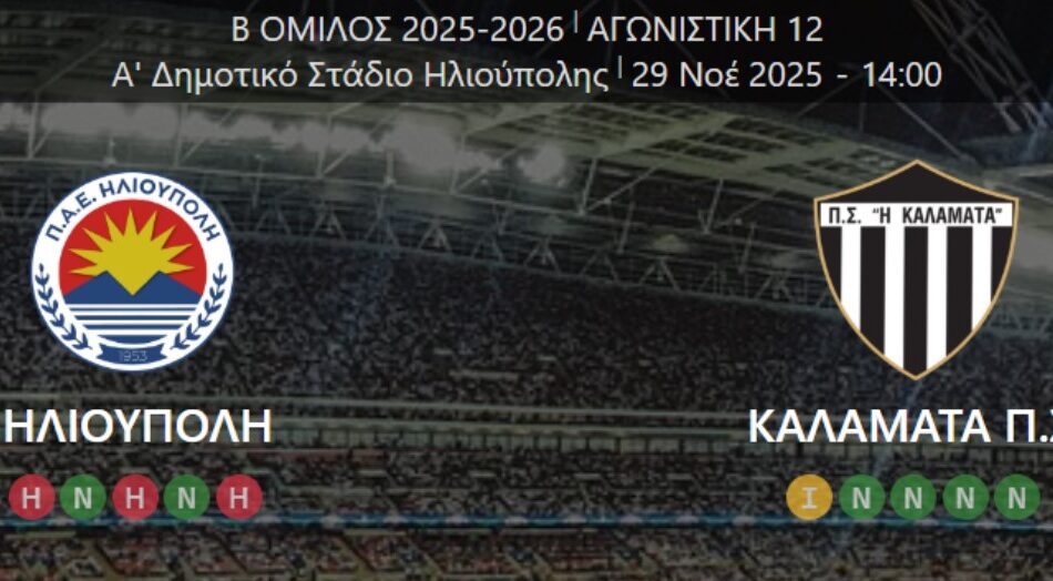 Η Καλαμάτα έρχεται από τη νίκη με τα Χανιά και η Ηλιούπολη από την εντός έδρας ήττα με την Μαρκό (1-2).