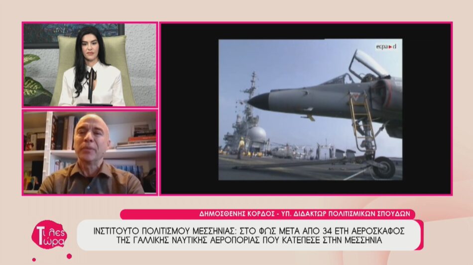 Στην εκπομπή «Τι λες τώρα» με την Αναστασία Μάντζαρη, ο Yπ. Διδάκτωρ Πολιτισμικών Σπουδών, Δημοσθένης Κορδός, αποκάλυψε το χρονικό μιας σπουδαίας ιστορικής έρευνας. Μετά από 34 ολόκληρα χρόνια, η άτρακτος του γαλλικού μαχητικού αεροσκάφους που κατέπεσε το 1992 στον Λυκόδημο Μεσσηνίας ήρθε στο φως, χάρη στις προσπάθειες του Ινστιτούτου Πολιτισμού Μεσσηνίας , τη συμβολή τοπικών ερευνητών και κατοίκων.