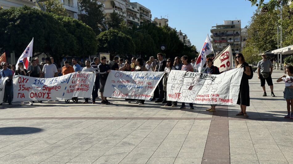 Με κεντρικό σύνθημα «Όχι στο 13ωρο – Δουλειά με δικαιώματα» εκατοντάδες εργαζόμενοι από τον δημόσιο και ιδιωτικό τομέα, έδωσαν δυναμικό «παρών», διαδηλώνοντας ενάντια στην ακρίβεια και τα εργασιακά στην κεντρική πλατεία και το Εργατικό Κέντρο Καλαμάτας.