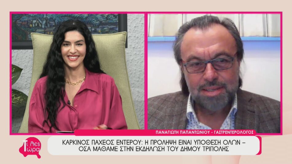 Ο γαστρεντερολόγος Παναγιώτης Παπαντωνίου ήταν καλεσμένος στην εκπομπή «Τι Λες Τώρα» με την Αναστασία Μάντζαρη, με αφορμή την επιτυχημένη ενημερωτική δράση του Δήμου Τρίπολης για τον καρκίνο του παχέος εντέρου. Ο κ. Παπαντωνίου τόνισε την κρισιμότητα της πρόληψης και της έγκαιρης διάγνωσης, επισημαίνοντας τις ηλικίες έναρξης των προληπτικών ελέγχων, τα ύπουλα συμπτώματα, καθώς και τη σημασία της κολονοσκόπησης ιδιαίτερα σε άτομα με οικογενειακό ιστορικό.
