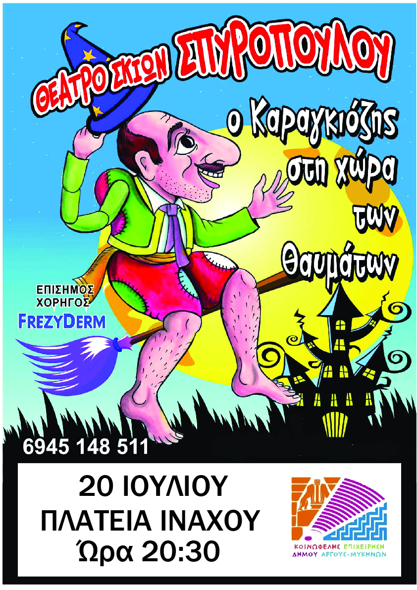 Την Πέμπτη 20 Ιουλίου 2023 και ώρα 8.30 το βράδυ στην πλατεία στον Ίναχο, η ΚΕΔΑΜ οργανώνει παιδική βραδιά με το Θέατρο Σκιών Σπυρόπουλου που παρουσιάζει τον «Καραγκιόζη στη χώρα των θαυμάτων».