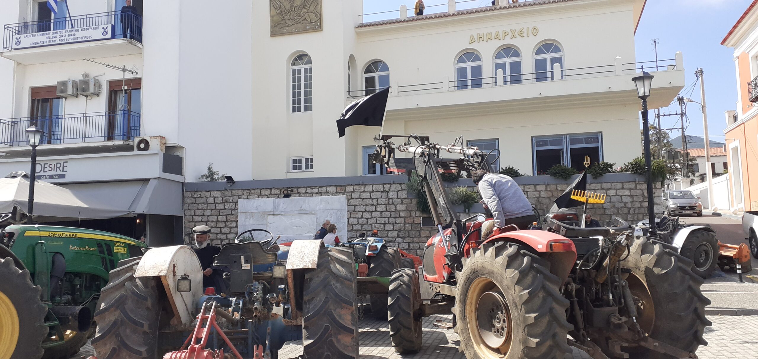 Με τα τρακτέρ στο δημαρχείο της Πύλου παρατάχθηκαν οι αγρότες – μέλη του Αγροτικού Συλλόγου Χανδρινού και Περιφέρειας ζητώντας έργα που θα βοηθήσουν τον αγροτικό κόσμο και τις καλλιέργειες στην ευρύτερη περιοχή.