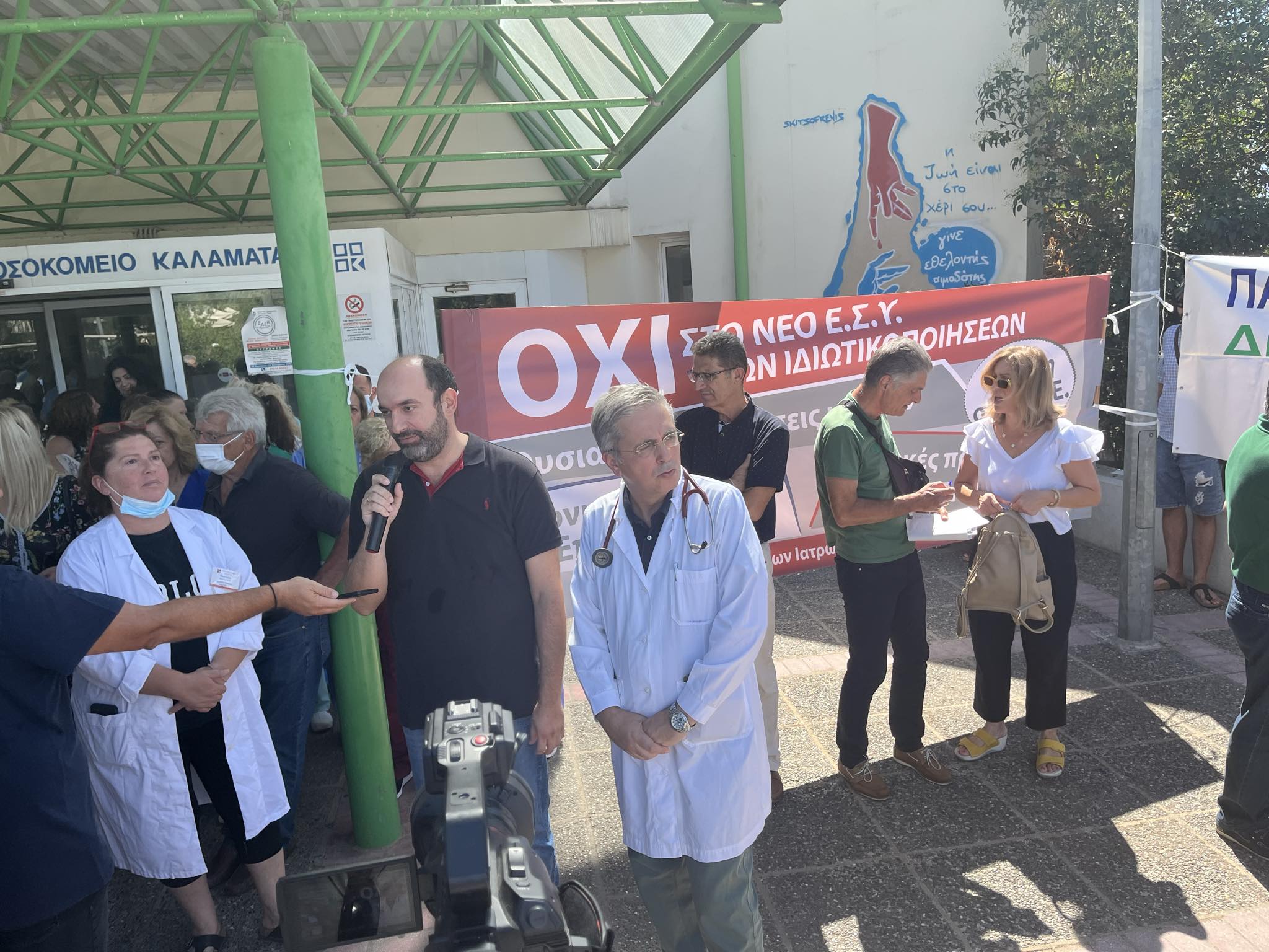 Στην κεντρική είσοδο του Νοσοκομείου της Καλαμάτας πραγματοποιήθηκε πριν από λίγη ώρα κινητοποίηση με επίκεντρο τα θέματα της δημόσιας υγείας, με έμφαση στην ενίσχυση του ιατρικού και νοσηλευτικού προσωπικού άμεσα.