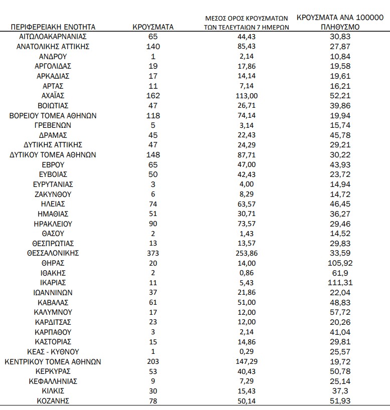 «Κόκκινο» χτύπησαν και σήμερα τα κρούσματα κορωνοϊού στην Ελλάδα με τον ΕΟΔΥ να ανακοινώνει συνολικά 3.628 νέες επιβεβαιωμένες μολύνσεις. Όπως κάθε μέρα η Αττική έχει την αρνητική πρωτιά , ενώ την ίδια στιγμή, «πονοκέφαλο» στους ειδικούς προκαλούν αρκετές ακόμα περιοχές της Ελλάδας, ανάμεσα στις οποίες και η Μεσσηνία που σήμερα δίνει 96 νέες μολύνσεις. Ακολουθούν Αχαϊα με 162 και Κορινθία με 53, ενώ 16 νέα κρούσματα καταγράφονται σήμερα στη Λακωνία, 19 στην Αργολιδα και 17 στην Αρκαδία.