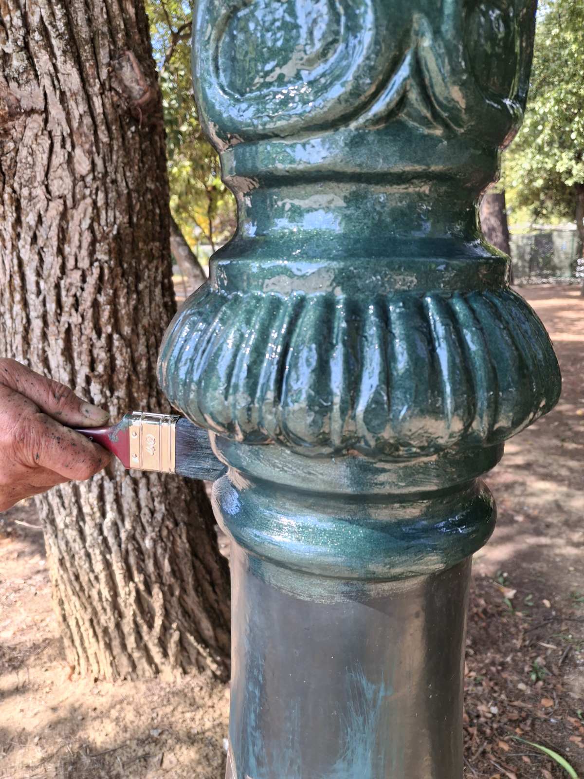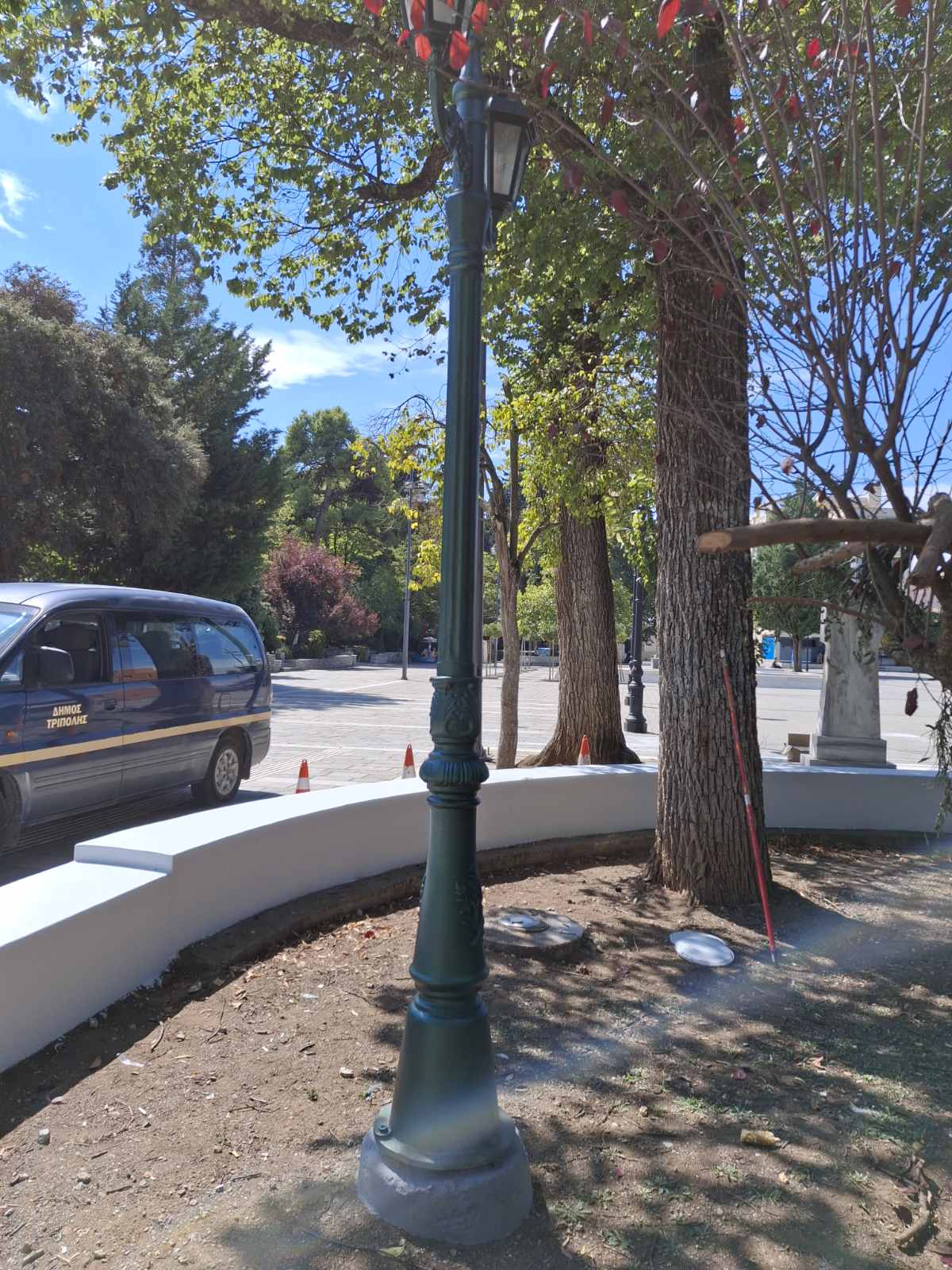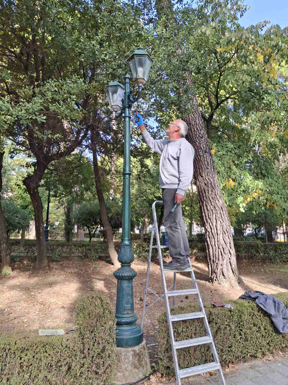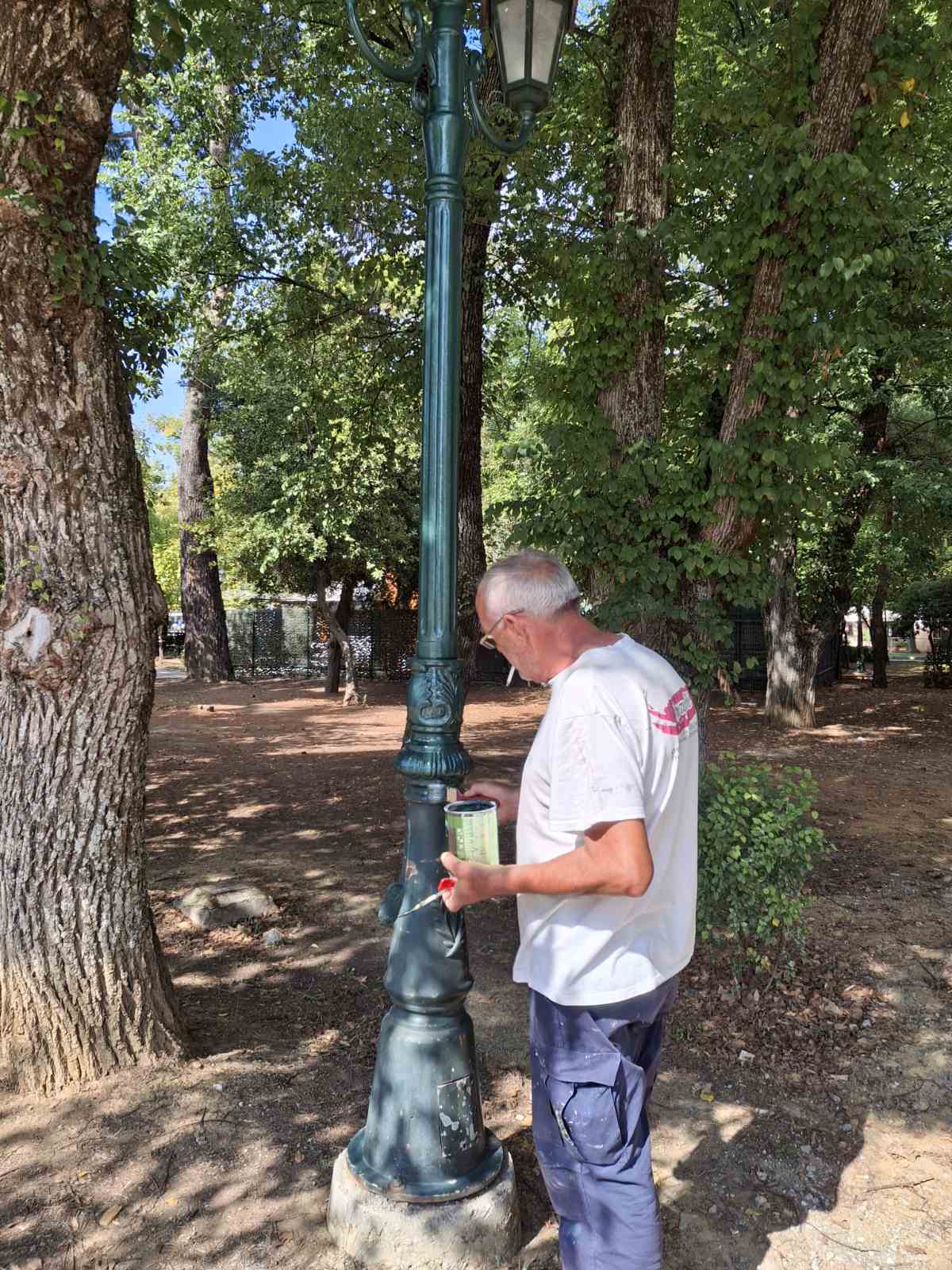 Ειδικότερα, υπό την επίβλεψη του Αντιδημάρχου Καθημερινότητας κ. Βασίλη Κοττή, έγιναν εργασίες επιδιόρθωσης και βαφής φωτιστικών με τις τσιμεντένιες βάσεις τους που βρίσκονται στο πάρκο της Πλατείας Άρεως και του Πνευματικού Κέντρου.