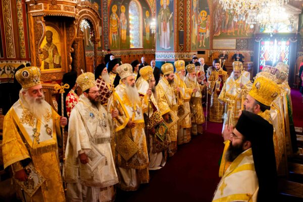 Στην Ακολουθία του Όρθρου χοροστάτησε ο Σεβ. Μητροπολίτης Θήρας, Αμοργού και Νήσων κ. Αμφιλόχιος, ενώ της πολυαρχιερατικής Θείας Λειτουργίας προεξήρχε ο εορτάζων Σεβ. Μητροπολίτης Μεσσηνίας κ. Χρυσόστομος. Συλλειτούργησαν οι Σεβ. Μητροπολίτες Ξάνθης και Περιθεωρίου κ. Παντελεήμων, Άρτης κ. Καλλίνικος, Ιλίου, Αχαρνών και Πετρουπόλεως κ. Αθηναγόρας, Κηφισίας, Αμαρουσίου και Ωρωπού κ. Κύριλλος, Μαρωνείας και Κομοτηνής κ. Παντελεήμων, Θεσσαλιώτιδος και Φαναριοφερσάλων κ. Τιμόθεος, Μεγάρων και Σαλαμίνος κ. Κωνσταντίνος, Καρθαγένης κ. Μελέτιος, Σταγών και Μετεώρων κ. Θεόκλητος, Λήμνου και Αγίου Ευστρατίου κ. Ιερόθεος, Πολυάνης και Κιλκισίου κ. Βαρθολομαίος, Θήρας, Αμοργού και Νήσων κ. Αμφιλόχιος, Μαντινείας και Κυνουρίας κ. Επιφάνιος, καθώς και ο Θεοφιλέστατος Επίσκοπος Τεγέας κ. Θεόκλητος.