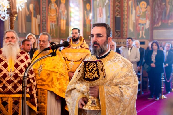 Μετά το πέρας της Θείας Λειτουργίας, ο Σεβασμιώτατος ευχαρίστησε εγκάρδια τους Αρχιερείς, τον ιερό κλήρο, τις αρχές του τόπου και το ευσεβές εκκλησίασμα για την παρουσία και τις ευχές τους.