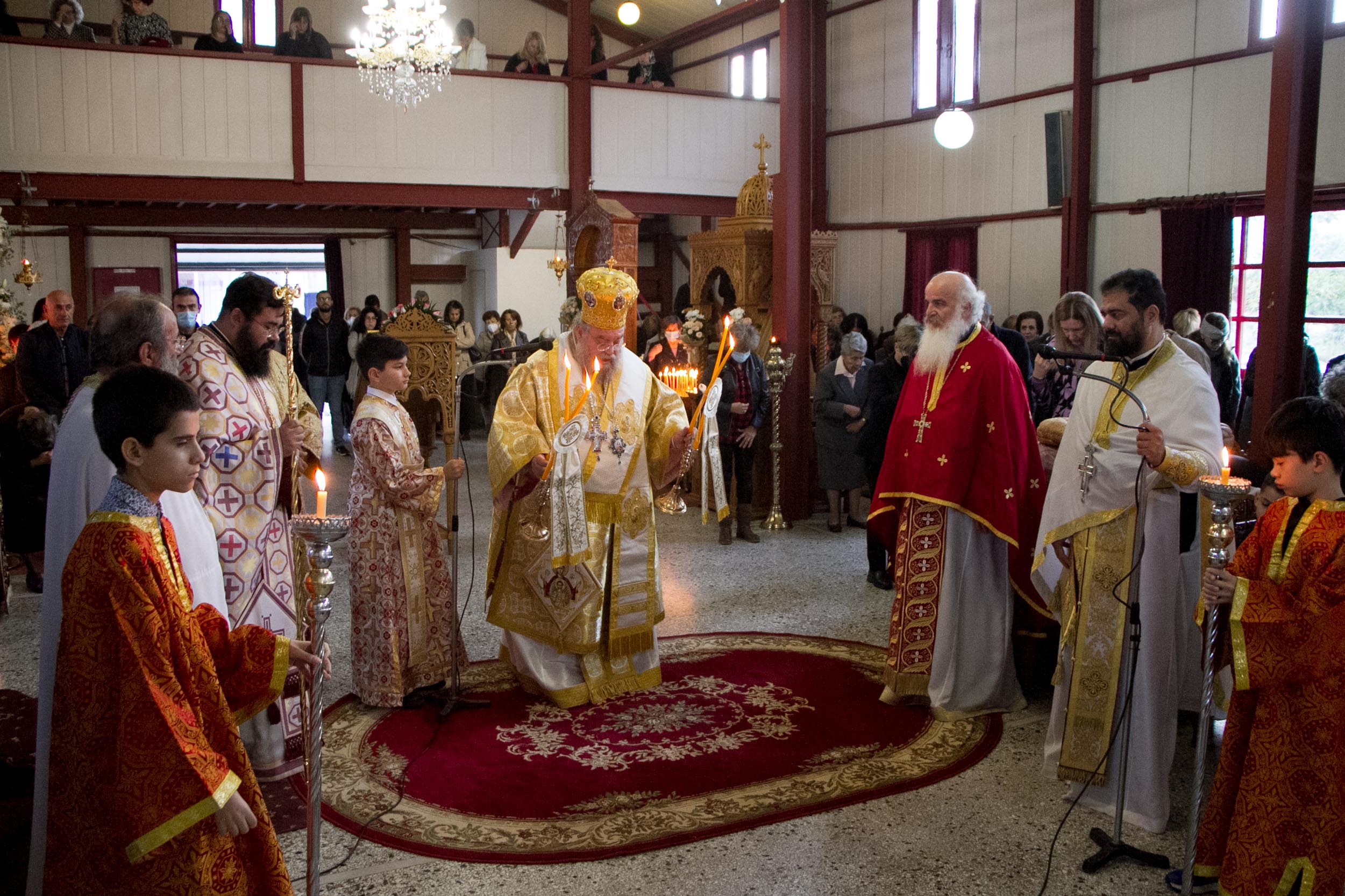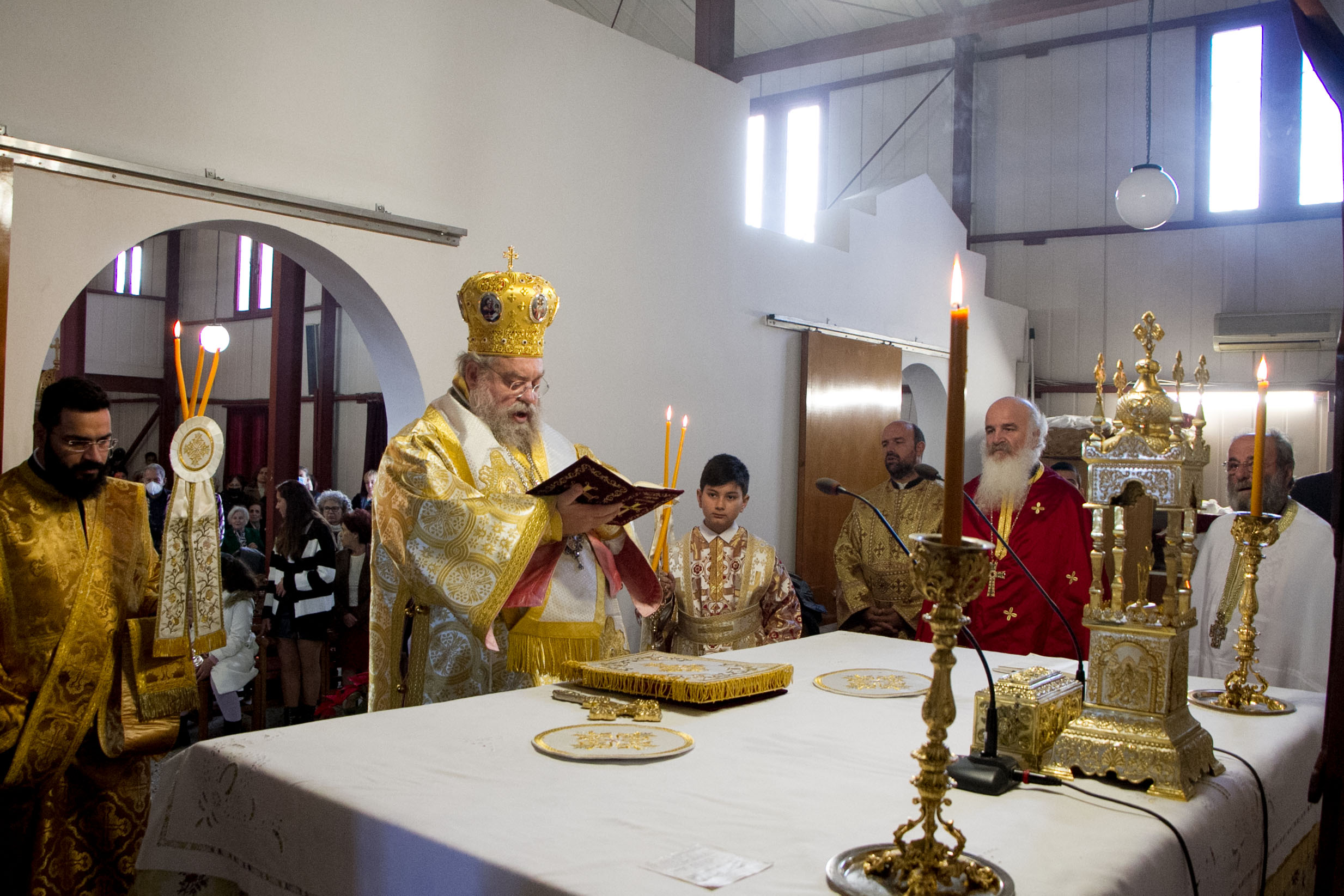 Του Όρθρου και της πανηγυρικής Θείας Λειτουργίας προέστη ο Σεβ. Μητροπολίτης Καρθαγένης κ. Μελέτιος, πλαισιούμενος από τους Εφημερίους του Ναού και άλλους Ιερείς της πόλεως.