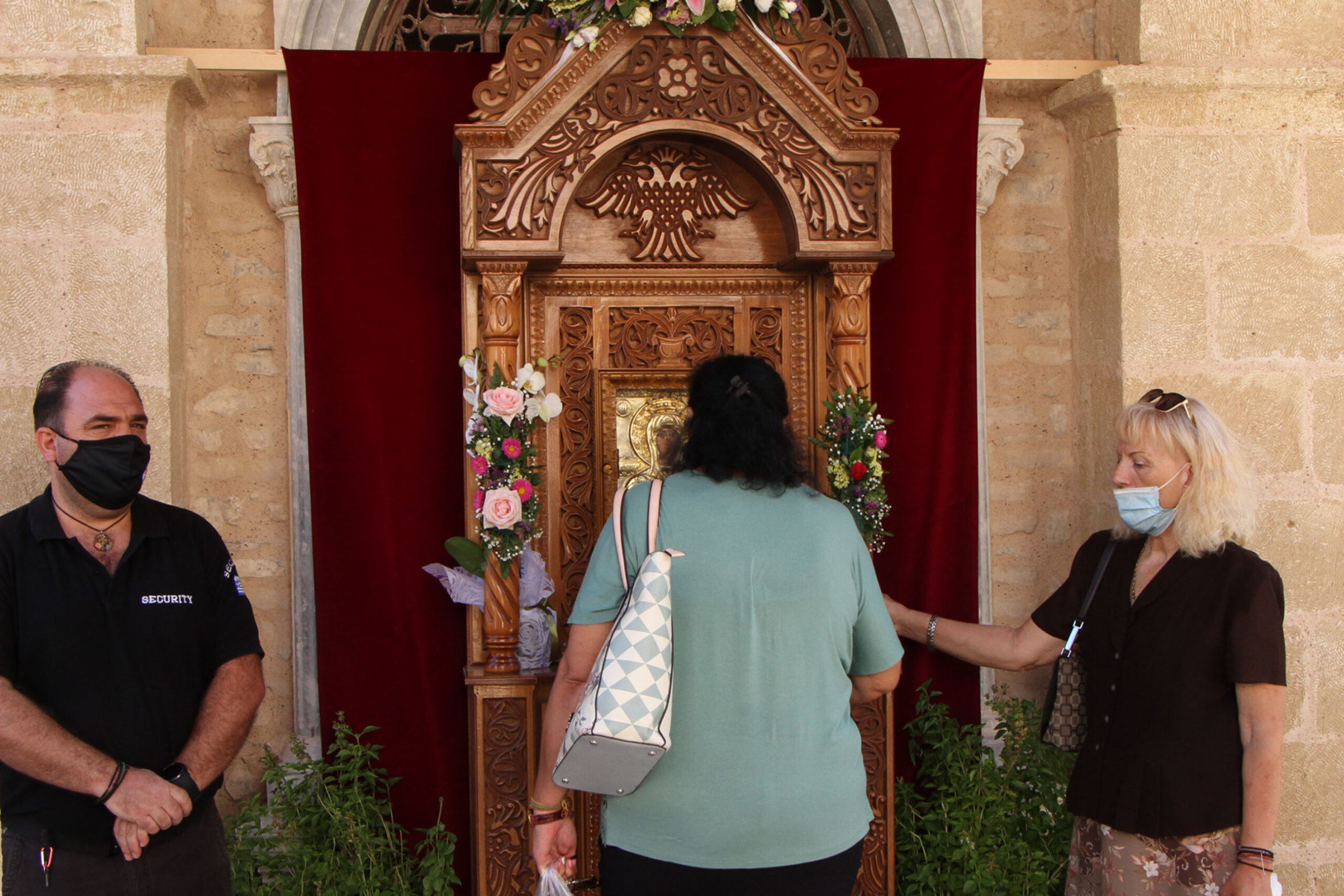 Στο κήρυγμά του ο Μητροπολίτης αναφέρθηκε στο Ιερό Πρόσωπο της Υπεραγίας Θεοτόκου και στις ευεργεσίες της προς το ανθρώπινο γένος. Συνάμα, δεν παρέλειψε να τονίσει την κρισιμότητα των στιγμών εκ της πανδημίας, ζητώντας πιστή τήρηση των υγειονομικών μέτρων και προτρέποντας σε εμβολιασμό. Επίσης, ενημέρωσε ότι η Θεία Λειτουργία τελέστηκε υπαίθρια λόγω ριζικής ανακαινίσεως στο εσωτερικό του Καθολικού, δαπάνη του Άρχοντος Έξαρχου της Αγίας του Χριστού Μεγάλης Εκκλησίας και Διοικητή του Αγίου Όρους, Αθανασίου Μαρτίνου, τον οποίο και ευχαρίστησε θερμά.