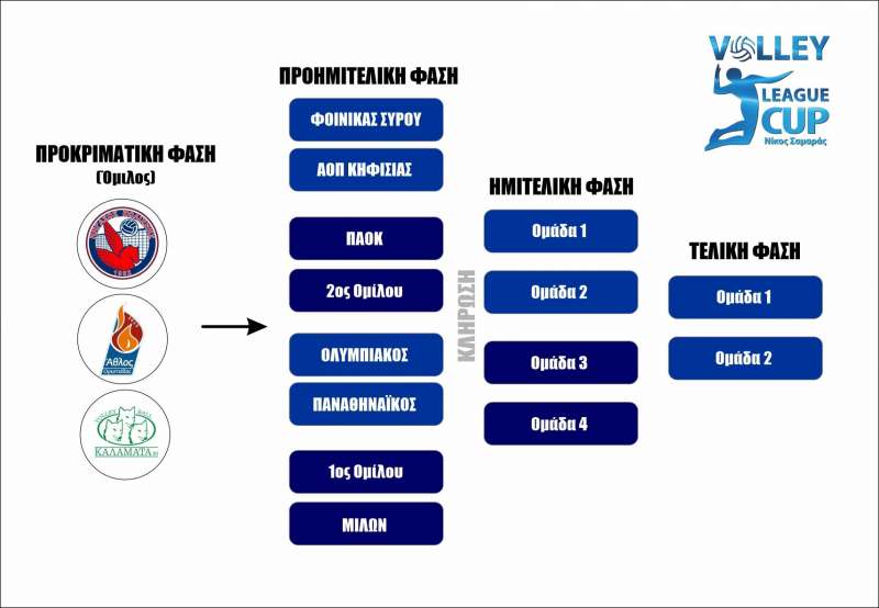 Στη Β φάση – προκριματικά, η πρώτη ομάδα του ομίλου της Α φάσης θα υποδεχτεί στην έδρα της τον Α.Ο.Ν.Σ. Μίλων και η δεύτερη ομάδα θα παίξει στην έδρα του ΠΑΟΚ.Τα άλλα δύο ζευγάρια της Β φάσης – προημιτελικά είναι Α.Ο. Φοίνικας Σύρου ΟΝΕΧ – Α.Ο.Π. Κηφισιάς και Ολυμπιακός Σ.Φ.Π. – Παναθηναϊκός Α.Ο.