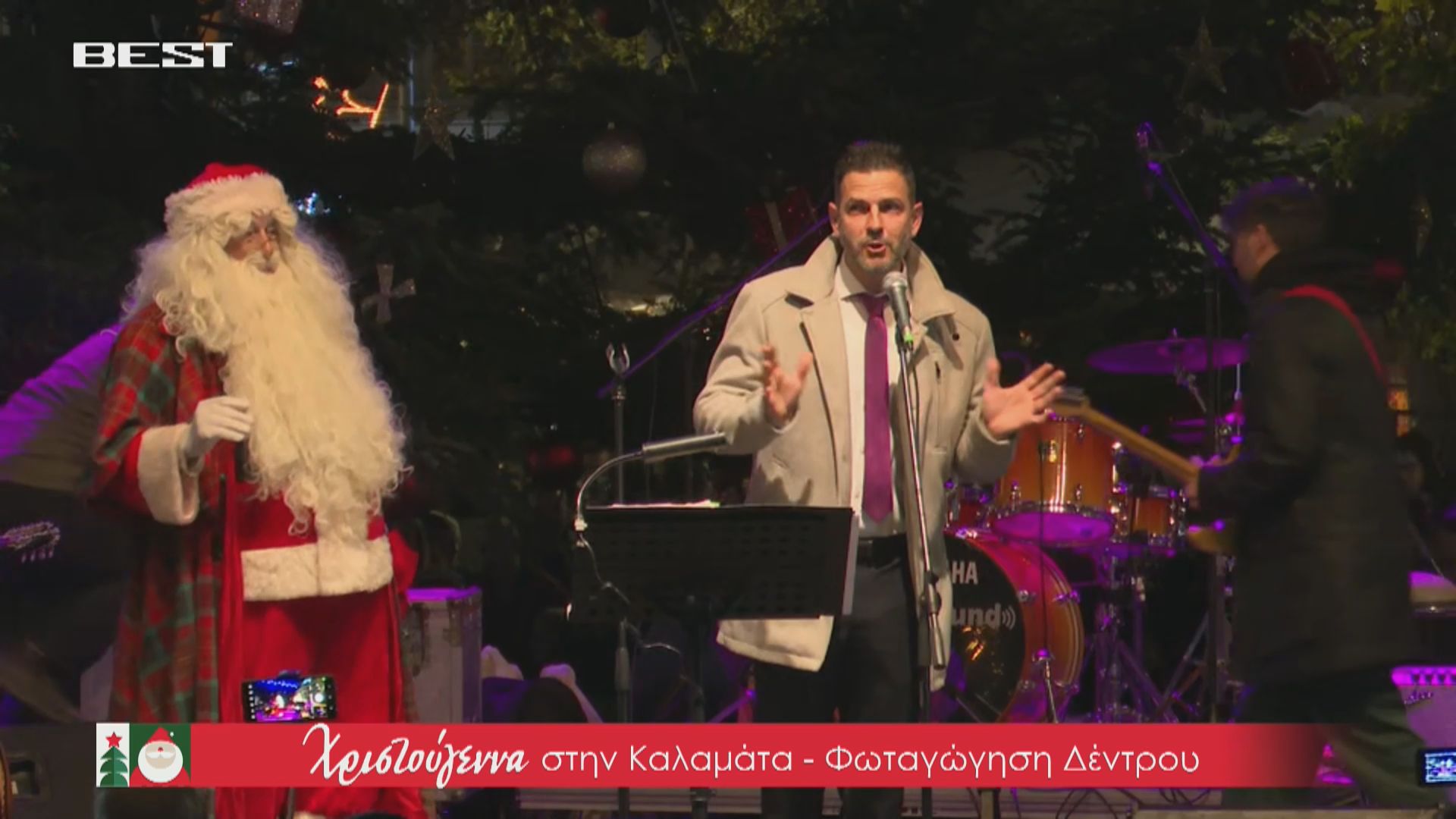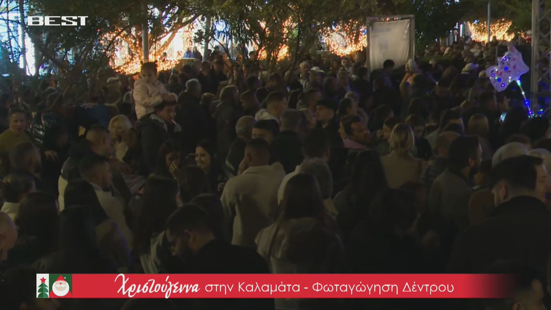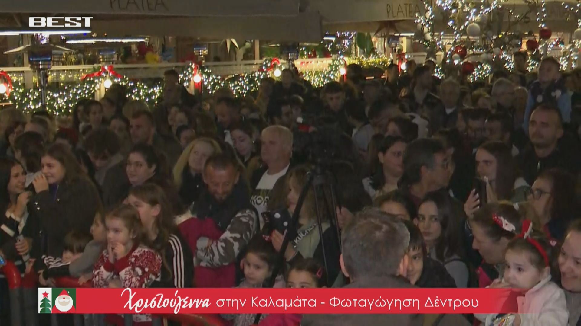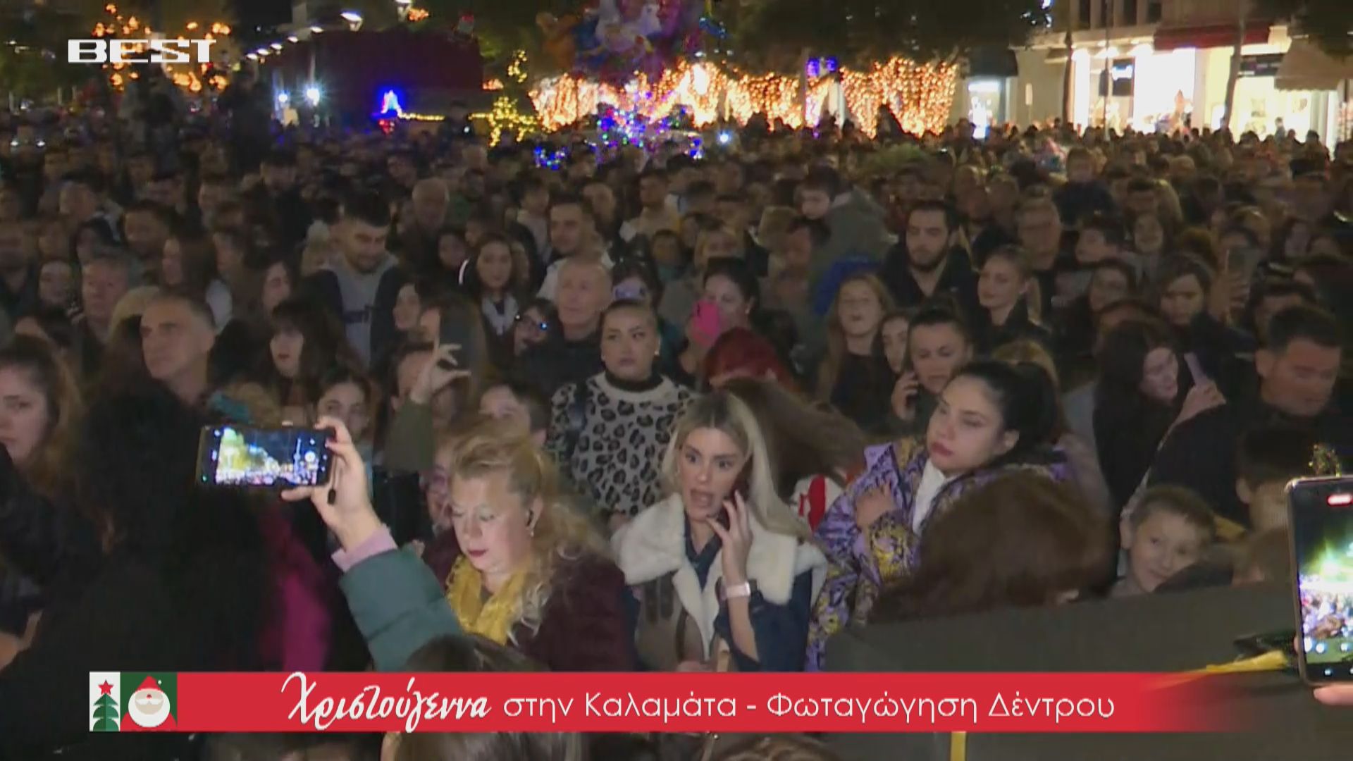 Φωταγωγήθηκε το 15μετρο φυσικό έλατο στην Κεντρική Πλατεία Καλαμάτας,παρουσία χιλιάδων μικρών και μεγάλων που βρέθηκαν στην κεντρική πλατεία της πόλης για να ανταλλάξουν ευχές και να συμμετέχουν στις εκδηλώσεις.