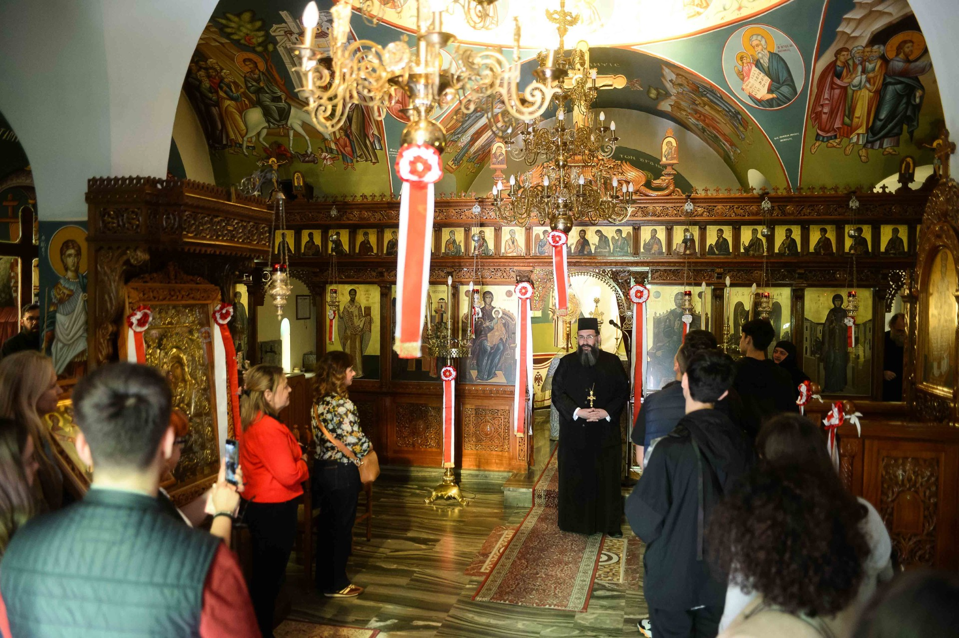 Οι μαθητές, συνοδευόμενοι από τον Α’ Γραμματέα της Ιεράς Συνόδου Αρχιμανδρίτη Δαμασκηνό Πετράδια και τον Γραμματέα της Ειδικής Συνοδικής Επιτροπής, Αρχιμανδρίτη Θεόκλητο Μέντη, αλλά και τους Εκπαιδευτικούς τους, επισκέφθηκαν κατά την πρώτη ημέρα τον Μητροπολιτικό Ναό της Υπαπαντής του Χριστού, όπου τους υποδέχθηκε ο Πρωτοσύγκελος της Ιεράς Μητροπόλεως Μεσσηνίας Αρχιμανδρίτης Φίλιππος Χαμαργιάς και οι υπεύθυνοι του Νεανικού Έργου Αρχιμ. Αλέξιος Αρώνης και Πρωτ. Σωτήριος Τζαϊλέας. Εν συνεχεία επισκέφθηκαν την Ιερά Μονή Καλογραιών, όπου διδάχθηκαν την τέχνη του αργαλειού, τον Ιστορικό Ναό των Αγίων Αποστόλων και το Αρχαιολογικό Μουσείο της πόλης της Καλαμάτας.
