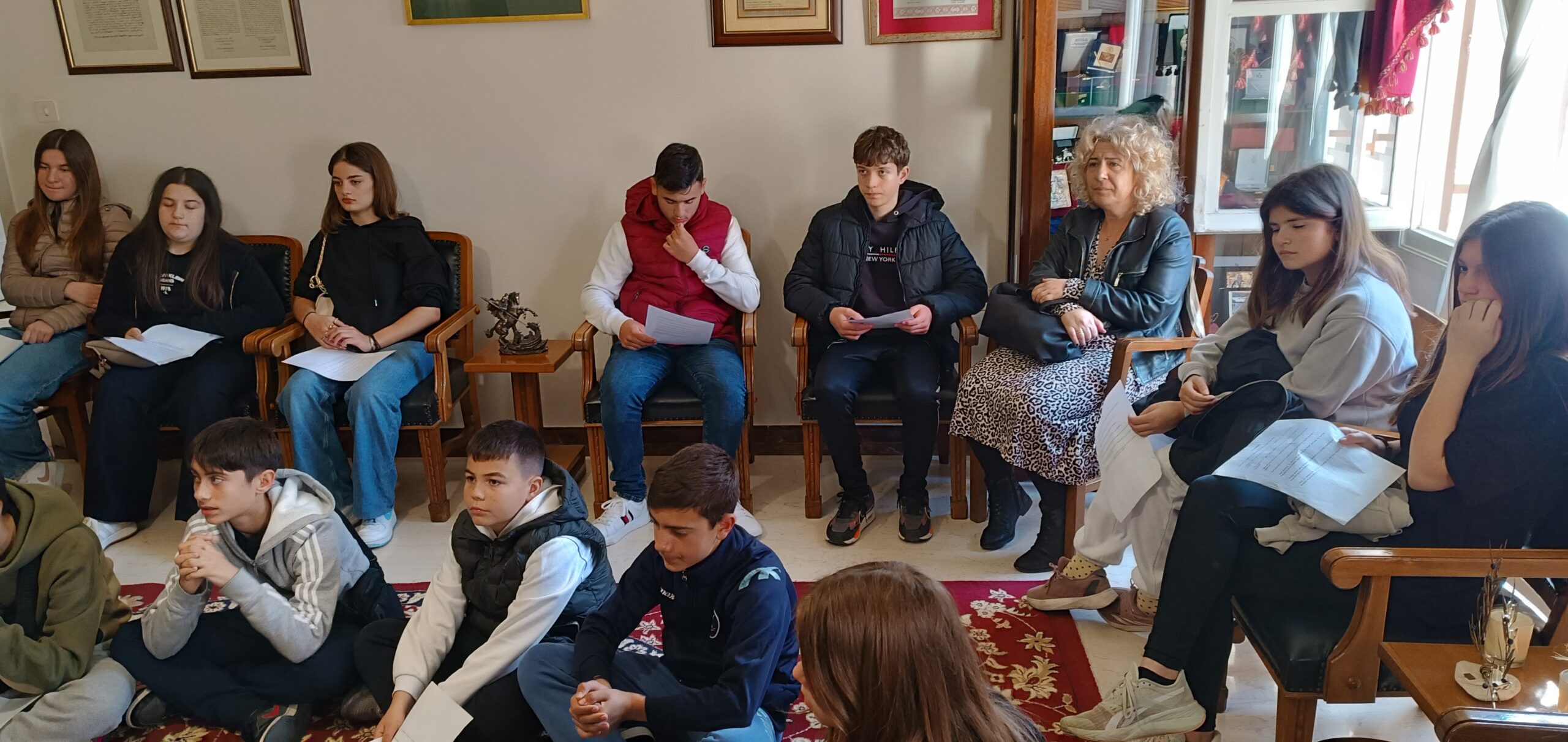 Τους μαθητές συνόδευαν η Διευθύντρια του Γυμνασίου Αικατερίνη Πλακούδα και οι καθηγήτριες Ελένη Μούρσα-Ασπρούλη και Φωτεινή Ρεζούδη.