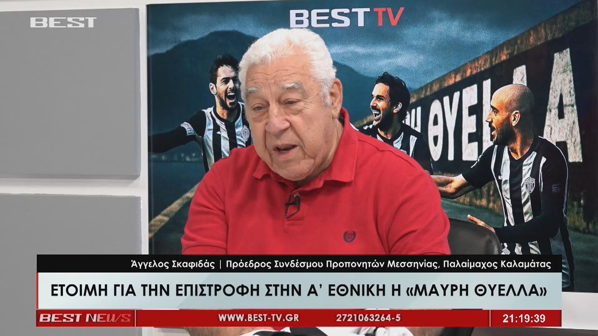 Την Κυριακή των Βαϊων η «μητέρα όλων των μαχών» θα γίνει στην Καλαμάτα! Η μεγάλα ομάδα της πόλης ύστερα από 25 χρόνια διεκδικεί την επάνοδό της στα μεγάλα σαλόνια του ποδοσφαίρου, παίζοντας κόντρα στην Κηφισιά. Το διακύβευμα είναι μεγάλο γι’ αυτό και η, ο νομός και οι άνθρωποί της ζουν στο ρυθμό του ποδοσφαίρου και της Μαύρης Θύελλας. Θυμούμενος τα παλιά και αδημονώντας για τα μελλοντικά, ο Άγγελος Σκαφιδάς, παλαίμαχος ποδοσφαιριστής της Μαύρης Θύελλας, και πρόεδρος του Συνδέσμου Προπονητών Ποδοσφαίρου Μεσσηνίας, βρέθηκε στο στούντιο της τηλεόρασης BEST όπου φανερά συγκινημένος μίλησε για την τεράστια ιστορία της ομάδας, που «περίπου 50 και τόσα χρόνια πριν, αυτή σχεδόν την ημερομηνία, στις 29 Μαρτίου, παίξαμε με τον Ίκαρο» για να πει πως όλοι οι φίλοι της ομάδας και δη όσοι την υπηρέτησαν φορώντας την φανέλα «Περιμέναμε 25 χρόνια για να ξαναζήσουμε αυτές τις χαρές!» λέγοντας με νόημα πως «Ήρθε η στιγμή…»