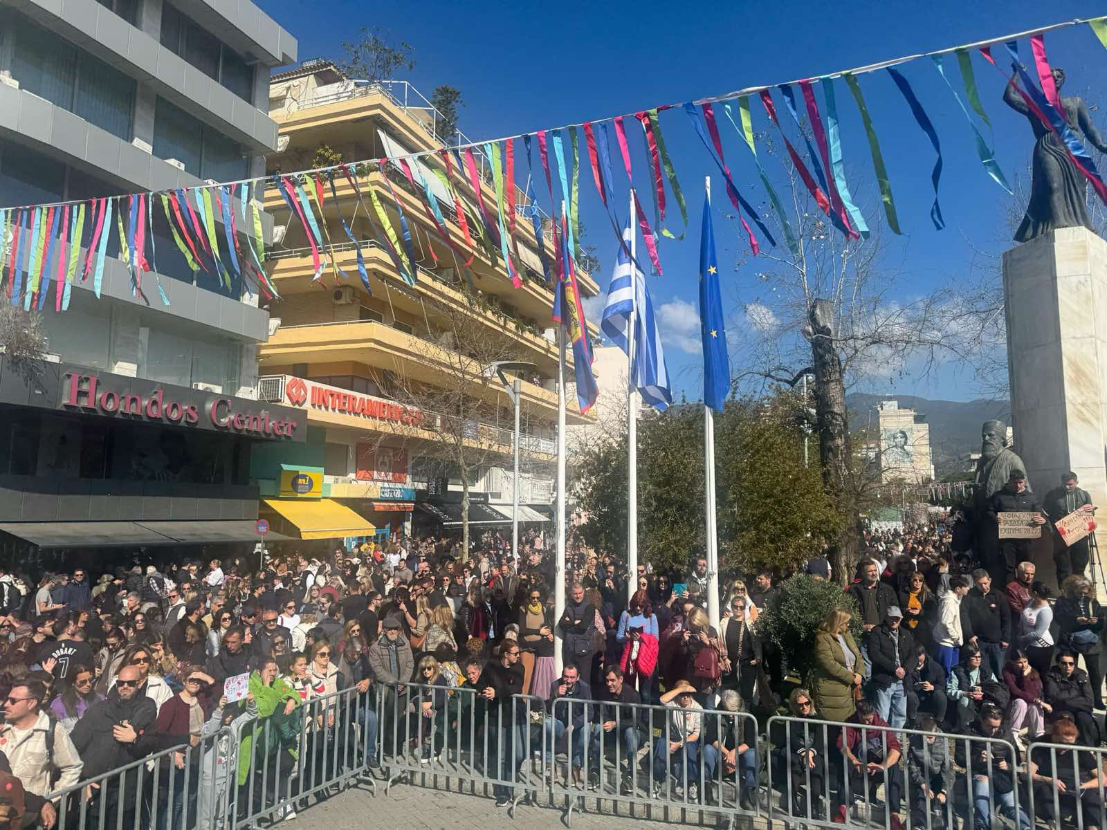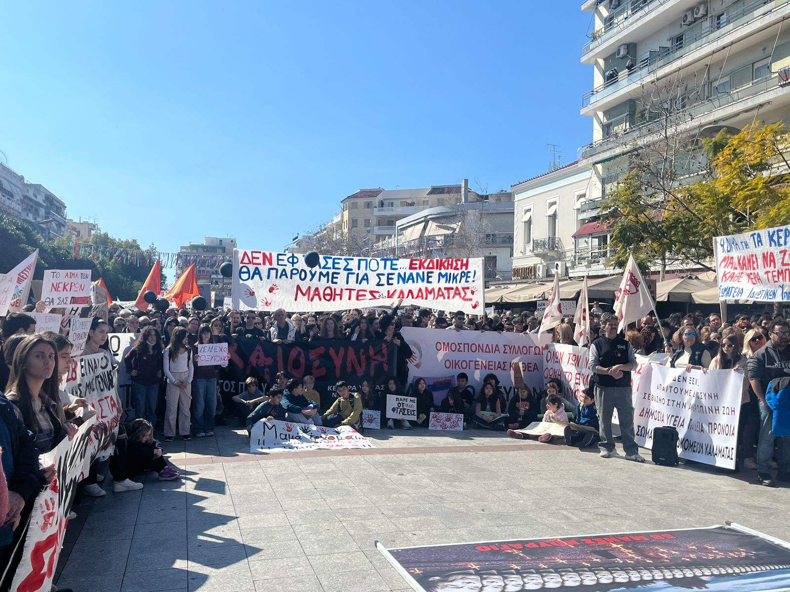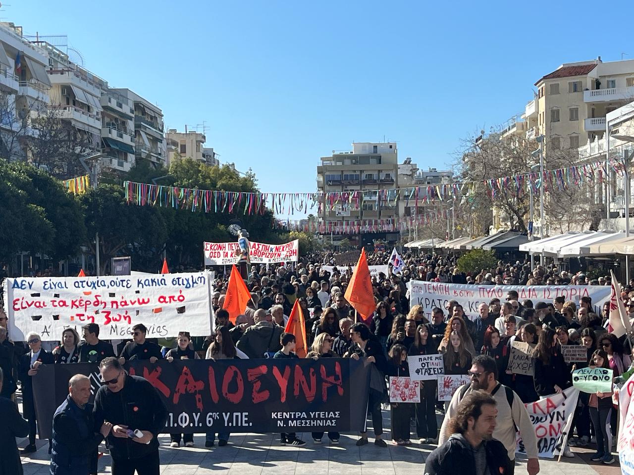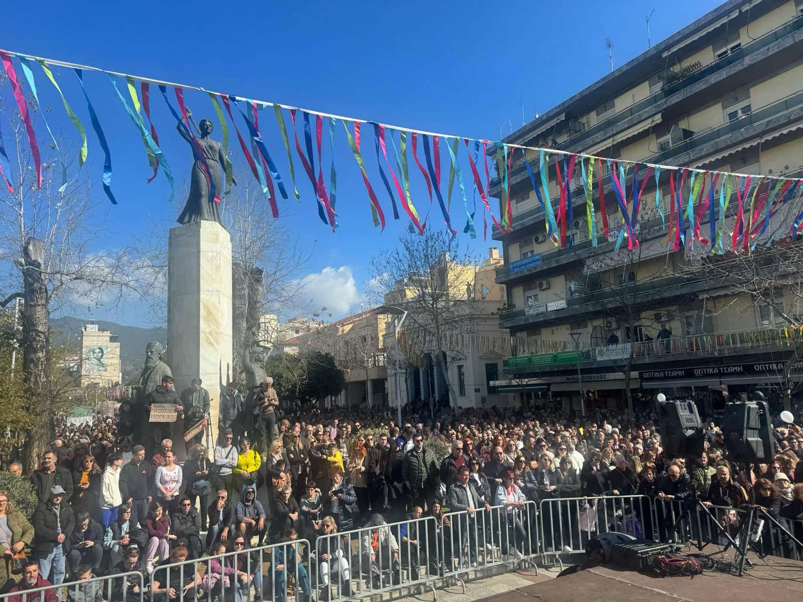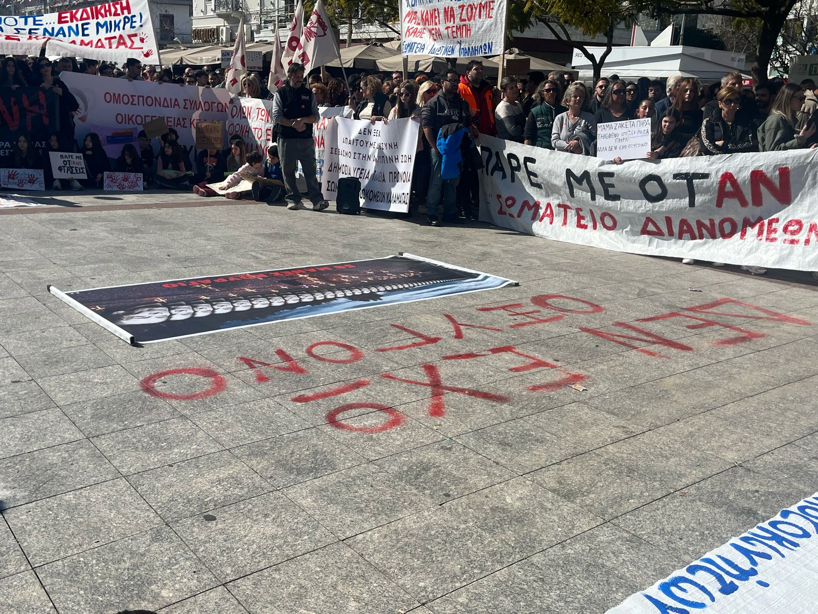 Η συγκέντρωση είναι μεγαλειώδης. Σχεδον καθολικά η πόλη συμμετέχει στη σημερινή κινητοποιήσει για τους 57 νεκρούς της σιδηροδρομικής τραγωδίας…