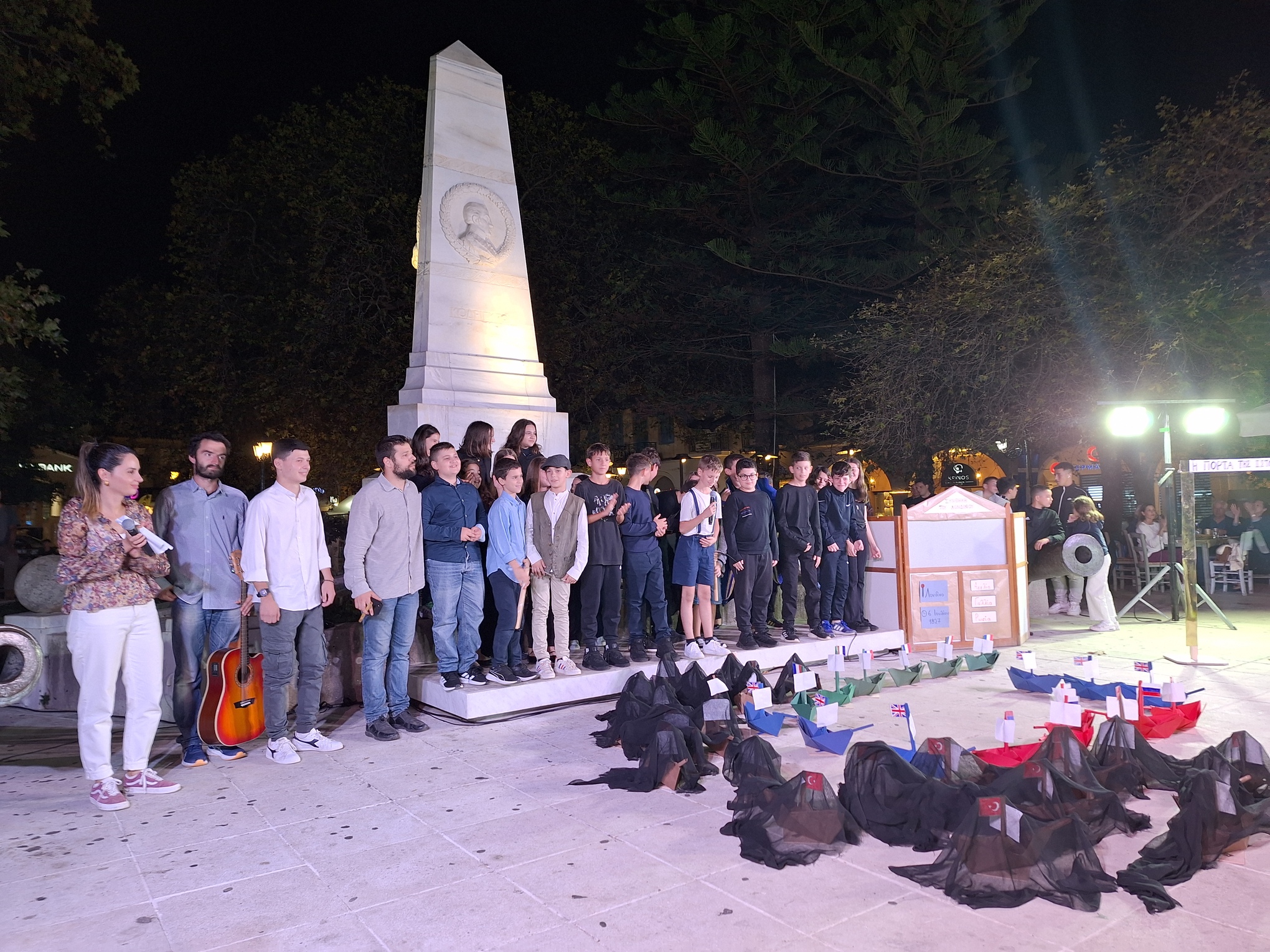 Οι μαθητές του 1ου Δημοτικού Σχολείου Πύλου πραγματοποίησαν εκδήλωση για τη Ναυμαχία του Ναβαρίνου, υπό την επιμέλεια των εκπαιδευτικών Ευσταθία Πολυχρόνη (Διευθύντρια), Αλέξανδρο Καρκατζούλη και Μαρία-Μυρτώ Ευσταθίου.