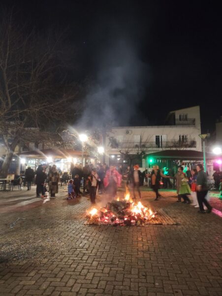 Μικροί και μεγάλοι ανταποκρίθηκαν στο κάλεσμα και γέμισαν την πλατεία με αποκριάτικες στολές και γιορτινή διάθεση, τιμώντας το έθιμο της Κυριακής της Τυρινής. Η βραδιά περιλάμβανε μουσική και χορό, face painting για τα παιδιά καθώς και το καθιερωμένο άναμμα της φωτιάς, που έδωσε ξεχωριστό χρώμα και ζεστασιά στην εκδήλωση.