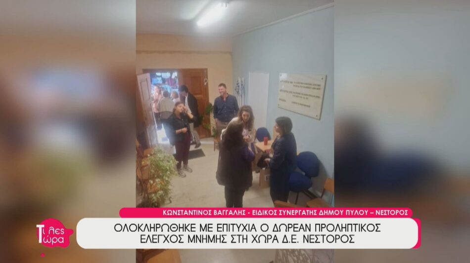 Ο Ειδικός Συνεργάτης του Δήμου Πύλου Νέστορος κ. Κωνσταντίνος Βάγγαλης, καλεσμένος στην επομπή ”Τι Λες Τώρα” με την Αναστασία Μάντζαρη, μίλησε για την δράση που διοργανώθηκε από τον Δήμο Πύλου – Νέστορος σε συνεργασία με το Κέντρο Ημέρας για τη Μνήμη και την Άνοια Καλαμάτας, η οποία στέφθηκε με επιτυχία, αναδεικνύοντας την ανάγκη των δημοτών για προληπτικές υπηρεσίες υγείας.