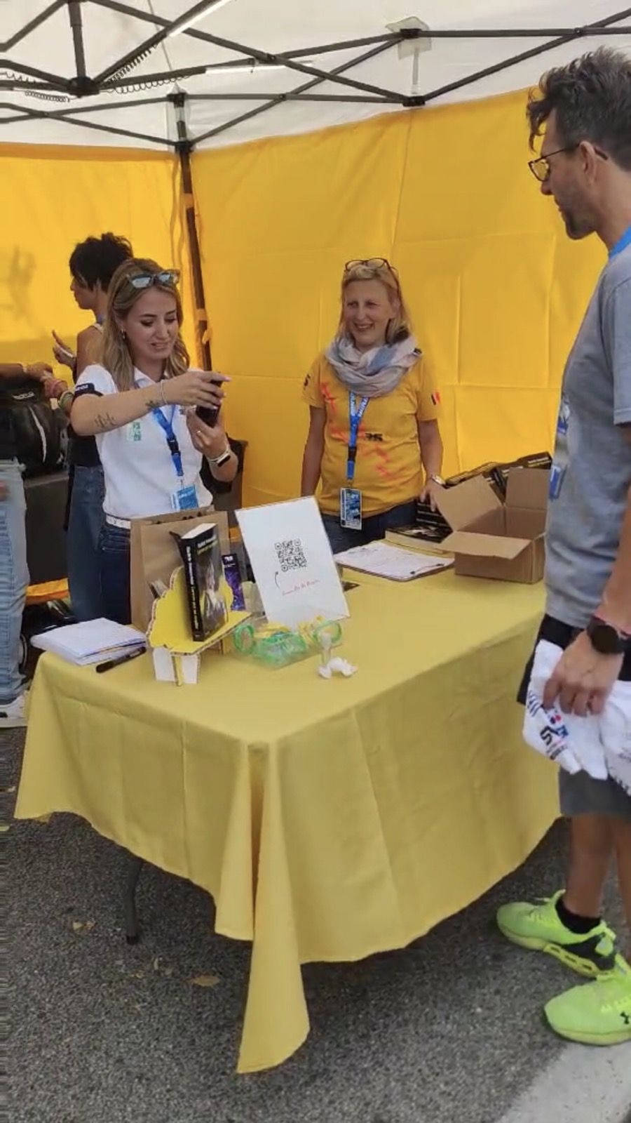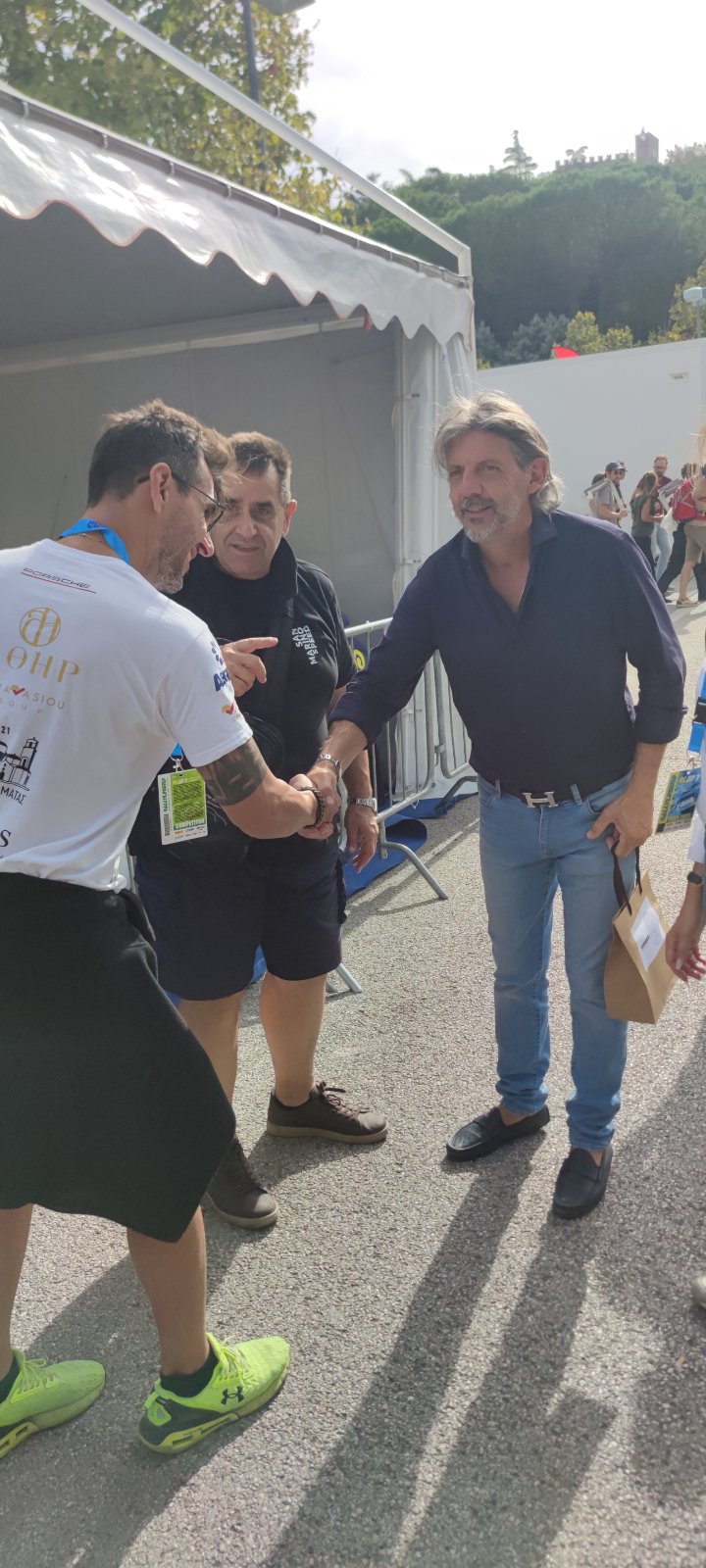 Σύντομη συνομιλία και αναμνηστική φωτογραφία με την Somaschini Rachele. Κορυφαία γυναίκα οδηγός με κυστική ίνωση που εμπνεύστηκε το #RUNNING FOR A BREATH, το Ίδρυμα για άτομα που νοσούν από την συγκεκριμένη ασθένεια. Μαζί τους ο μάνατζερ Στέλιος Φάκαλης