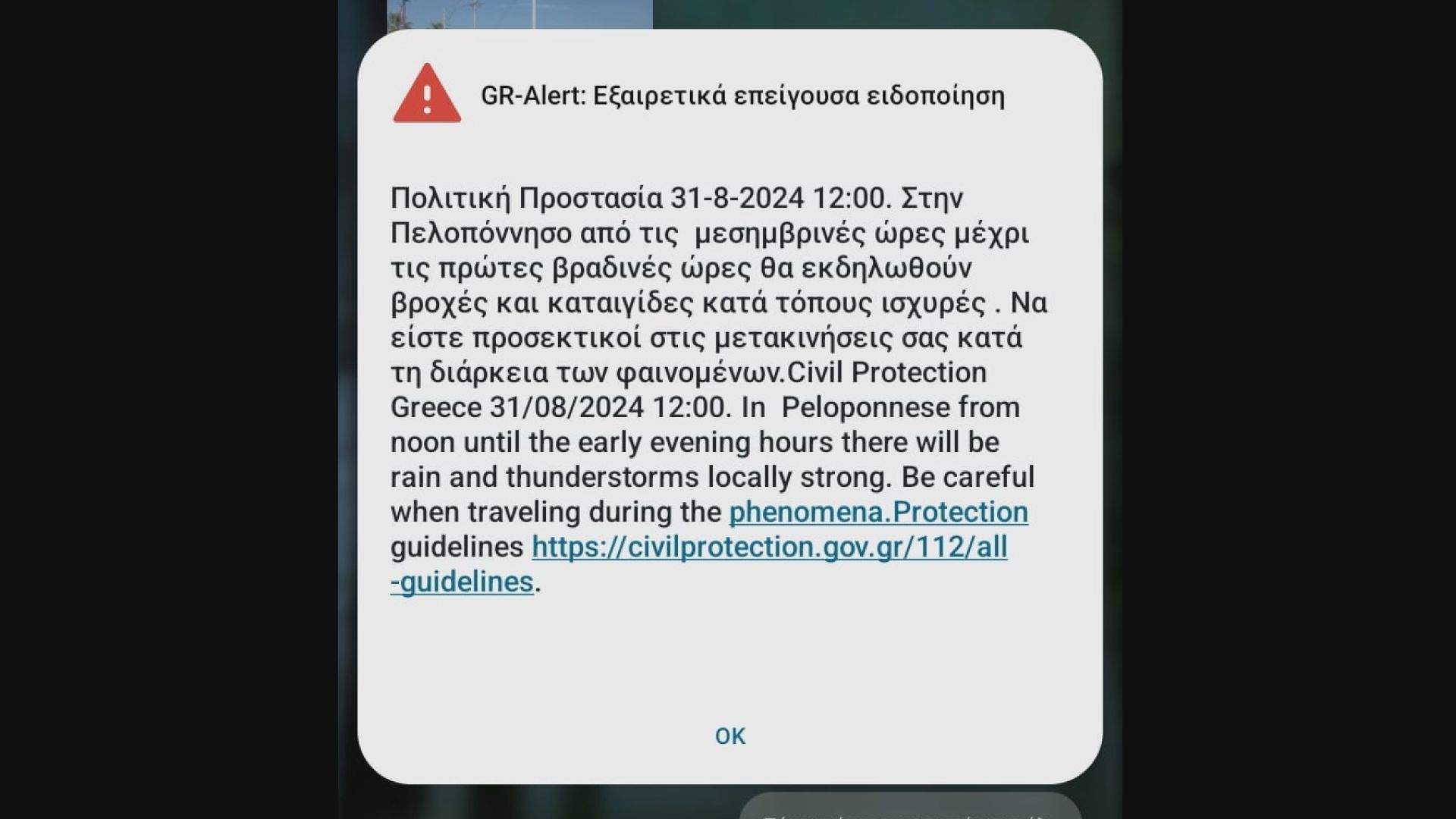 Περίπου στις 12 το μεσημέρι ήχησε ο συναγερμός του 112 για επικίνδυνα καιρικά φαινόμενα στην περιοχή της Πελοποννήσου και της Μεσσηνίας.