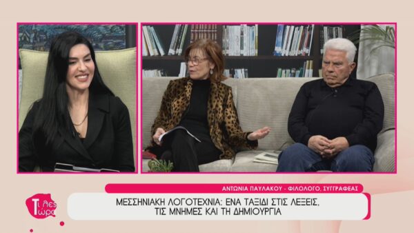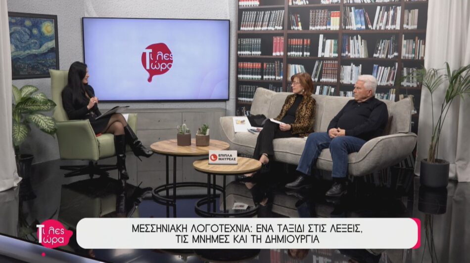 Στην εκπομπή “Τι λες τώρα” με την Αναστασία Μάντζαρη, βρέθηκαν καλεσμένοι η φιλόλογος και συγγραφέας Αντωνία Παυλάκου και ο ποιητής και συγγραφέας Αριστοτέλης Φράγκος. Με αφορμή το έργο τους, αλλά και την επικείμενη εκδήλωση της Εταιρίας Ελλήνων Λογοτεχνών τον Απρίλιο, ξεδίπλωσαν τις πτυχές της σύγχρονης μεσσηνιακής γραμματείας. Μια ουσιαστική συζήτηση για τη δύναμη της γραφής, από το διήγημα και τη μελέτη μέχρι την ποιητική παρωδία.