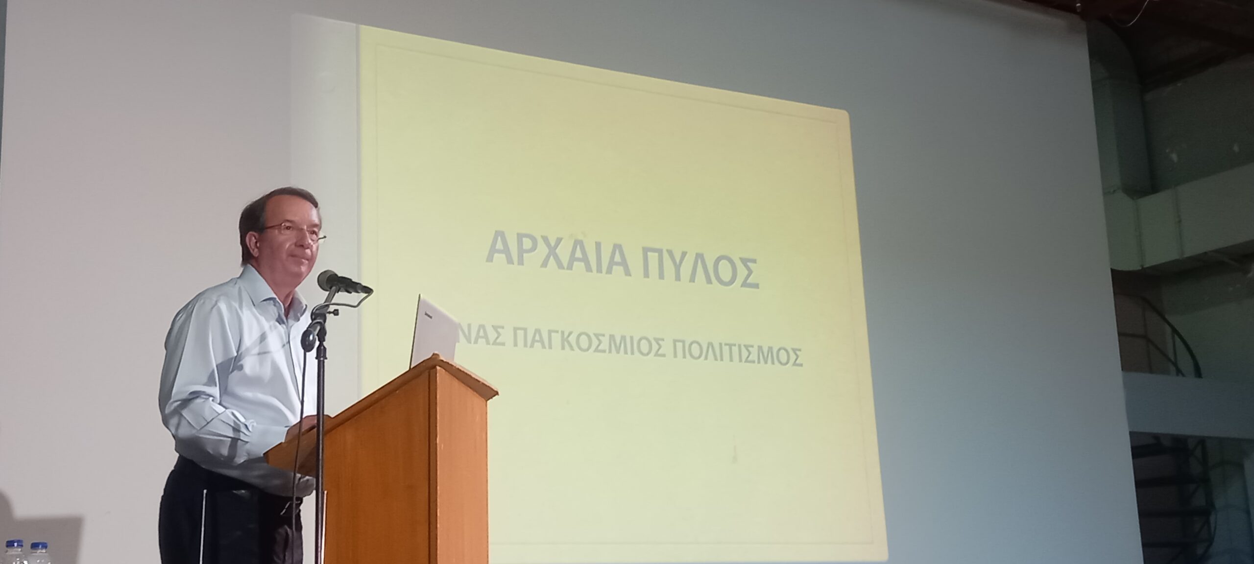 Μια περιήγηση στο χώρο και στον χρόνο, σε ένα μονοπάτι γεμάτο με τα ίχνη της ανθρώπινης δραστηριότητας από το 100.000 π.Χ μέχρι σήμερα. Ο Δημήτρης Βρεττάκος ξετύλιξε το κουβάρι της ιστορίας της περιοχής στο πλαίσιο μιας εξαιρετικά ενδιαφέρουσας διάλεξης για τη Πύλο ως έναν παγκόσμιο πολιτισμό στον χώρο και τον χρόνο.