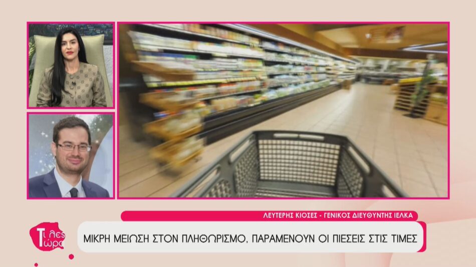 O Γενικός Διευθυντής του Ινστιτούτου Έρευνας Λιανεμπορίου Καταναλωτικών Αγαθών (ΙΕΛΚΑ) Λευτέρης Κιοσές, ήταν καλεσμένος στην εκπομπή ”Τι Λες Τώρα” με την Αναστασία Μάντζαρη που καθημερινά προβάλλεται στην τηλεόραση BEST 17:00-19:00 , μιλώντας για την μικρή πτώση του πληθωρισμού αλλα και τις πιέσεις των τιμών να παραμένουν φλέγον θέμα.