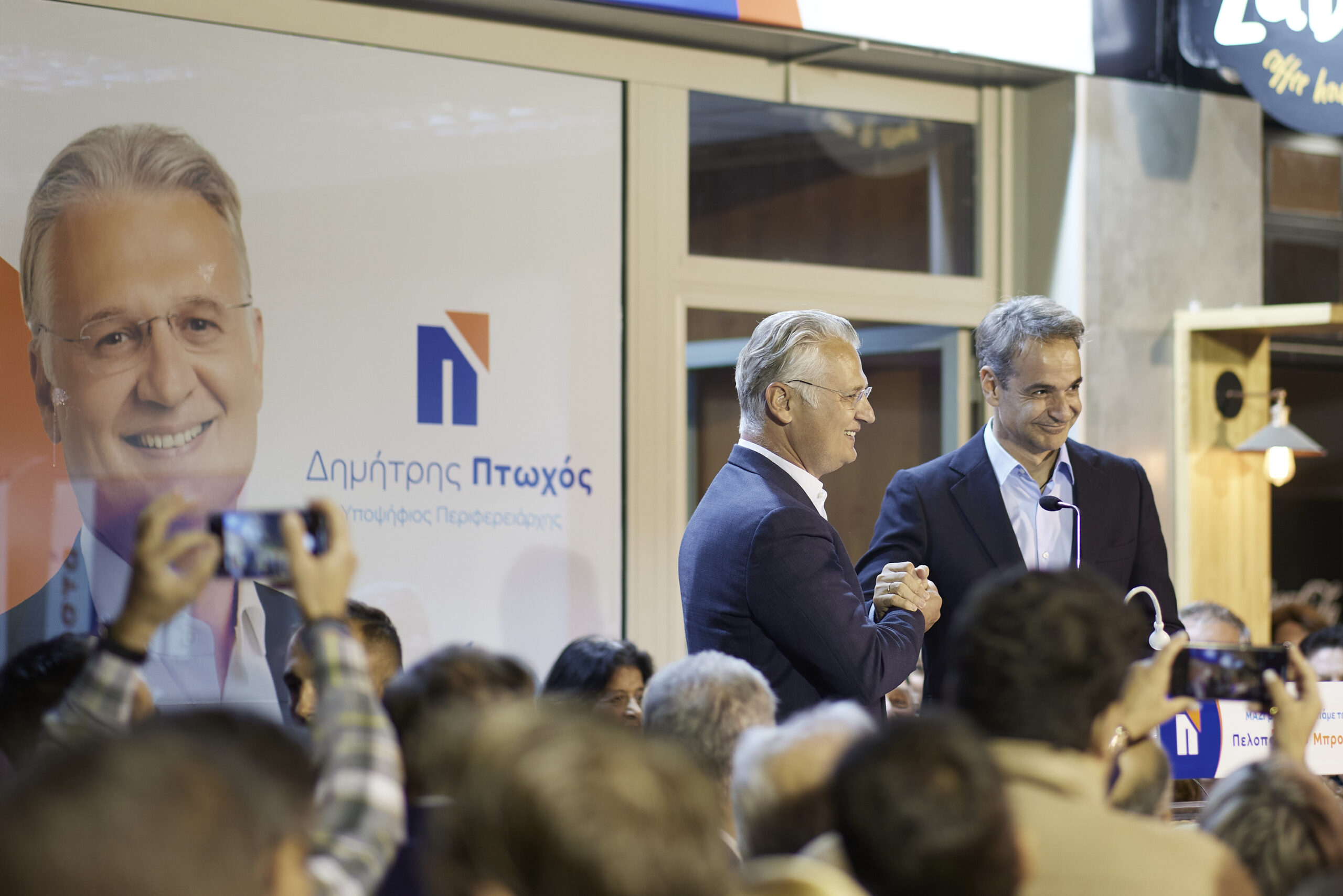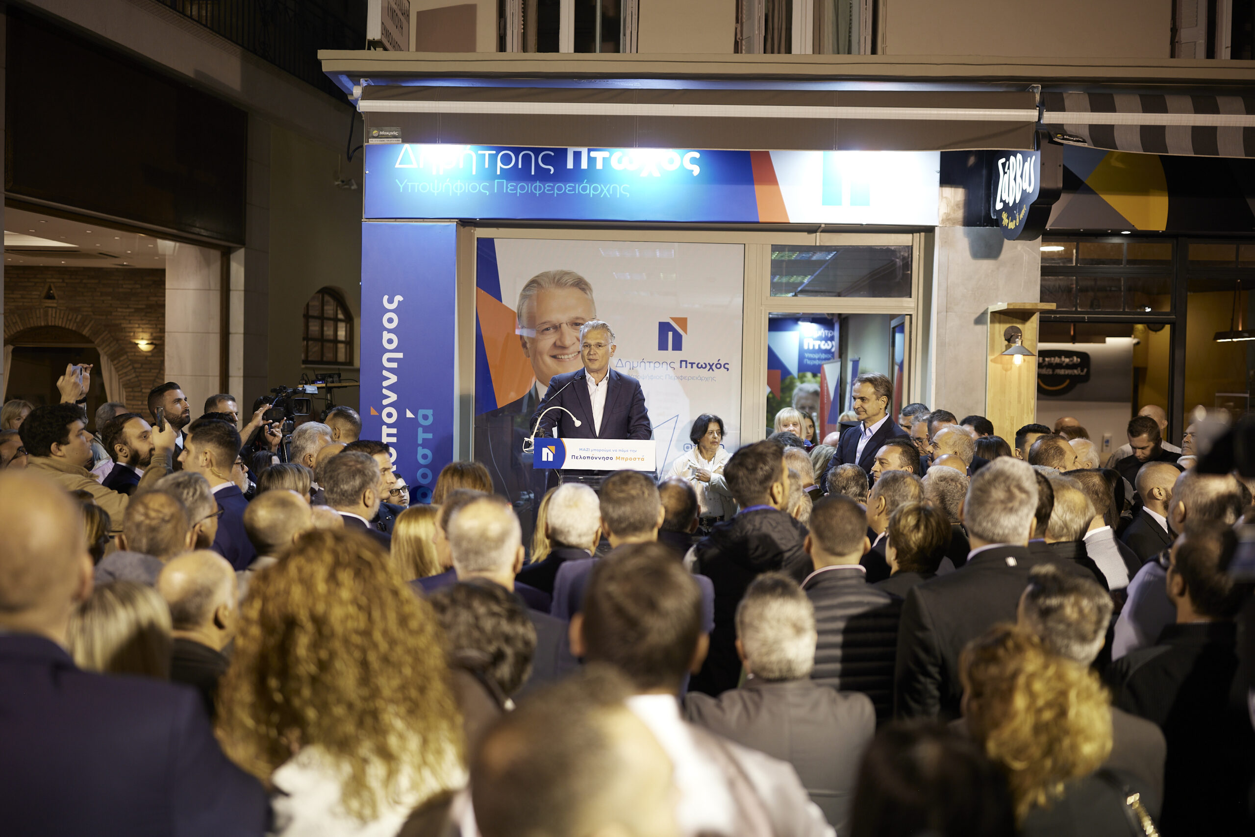 «Την προηγούμενη Κυριακή, το μήνυμα των συμπολιτών μας ήταν ξεκάθαρο, ήταν ηχηρό, έδειξαν τι θέλουν χωρίς καμία αμφιβολία. Είπαν ένα μεγάλο, δυνατό “ναι” στην αισιοδοξία και την αγάπη για τον τόπο μας, “ναι” στο σχέδιό μας για να κάνουμε την Πελοπόννησο μία Περιφέρεια πρότυπο σε όλα τα επίπεδα. Είπαν ένα μεγάλο “όχι” και γύρισαν την πλάτη στην τοξικότητα και στις ξεπερασμένες λογικές του χθες», σημείωσε από την πλευρά του ο υποψήφιος Περιφερειάρχης Δημήτρης Πτωχός. «Το ίδιο ακριβώς μήνυμα, τα ίδια ακριβώς μεγάλα “ναι” και μεγάλα “όχι” θα πουν οι πολίτες της Πελοποννήσου, ακόμη πιο δυνατά, ακόμα πιο αποφασιστικά, με ακόμα μεγαλύτερο πάθος, αυτή την Κυριακή», τόνισε στον χαιρετισμό του. «Το όραμά μας είναι να δούμε την Πελοπόννησο πρωταγωνίστρια ξανά», επισήμανε ο Δημήτρης Πτωχός, για να προσθέσει: «Ξέρω και μπορώ να συνεργαστώ αποτελεσματικά με την κυβέρνηση για το καλό του τόπου μου. Δεν είμαι έτοιμος μόνο να συνεργαστώ, αλλά και να διεκδικήσω όποτε χρειαστεί, πάντα και μόνο με ένα κριτήριο: το καλό της Πελοποννήσου». Στη συνέχεια, ο Κυριάκος Μητσοτάκης και ο Δημήτρης Πτωχός περπάτησαν σε κεντρικούς δρόμους της πόλης και συνομίλησαν με πολίτες.