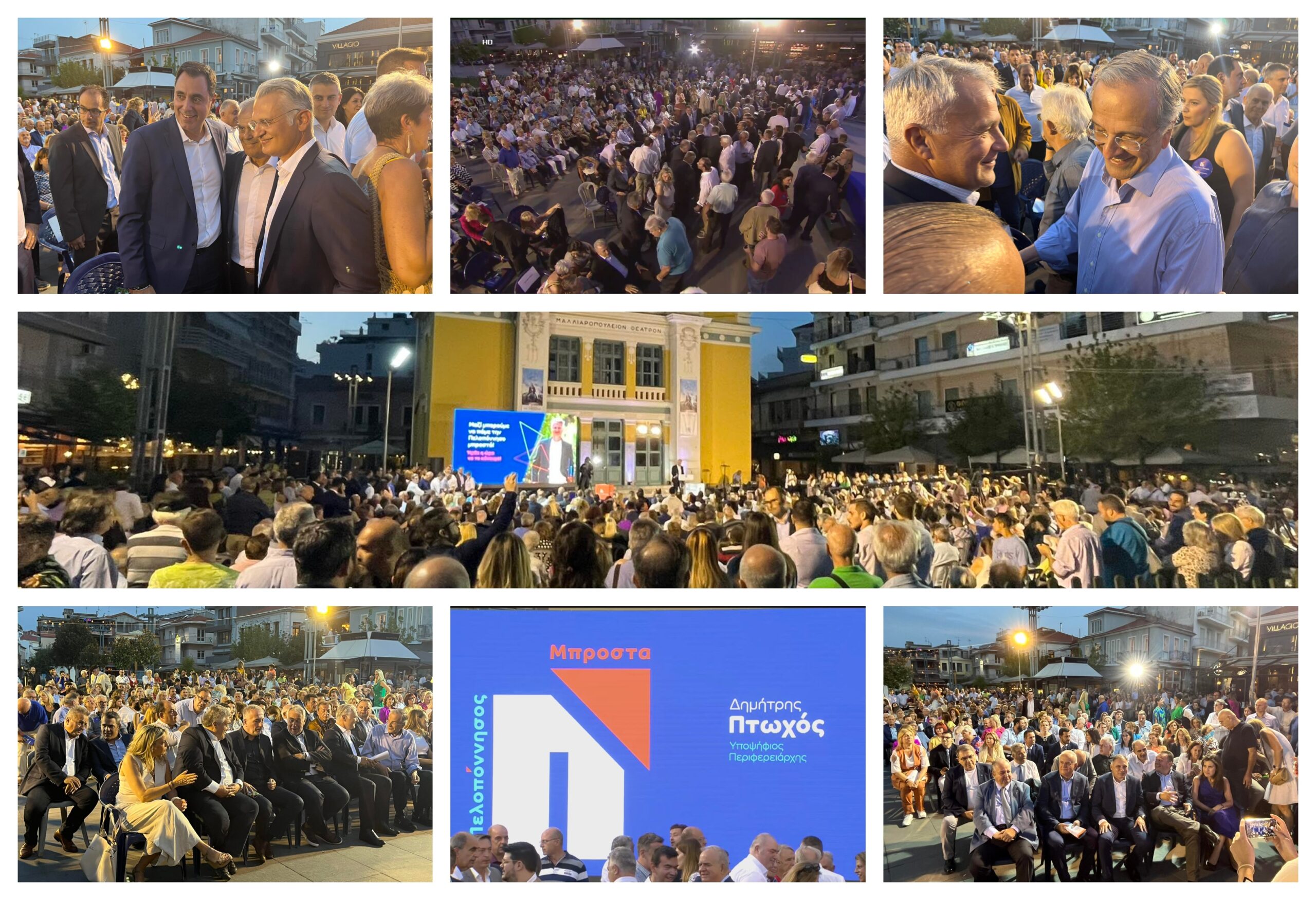 Μήνυμα νίκης από την καρδιά της Πελοποννήσου και ένα μήνυμα για να πάει η «Πελοπόννησος Μπροστά». Ο Δημήτρης Πτωχός σε μια πολύ μεγάλη εκδήλωση στην οποία ξεχώρισε η πολυπληθής παρουσία του κόσμου στην πλατεία Πετρινού, παρουσίασε το πρόγραμμά του και τους υποψήφιους του συνδυασμού του.