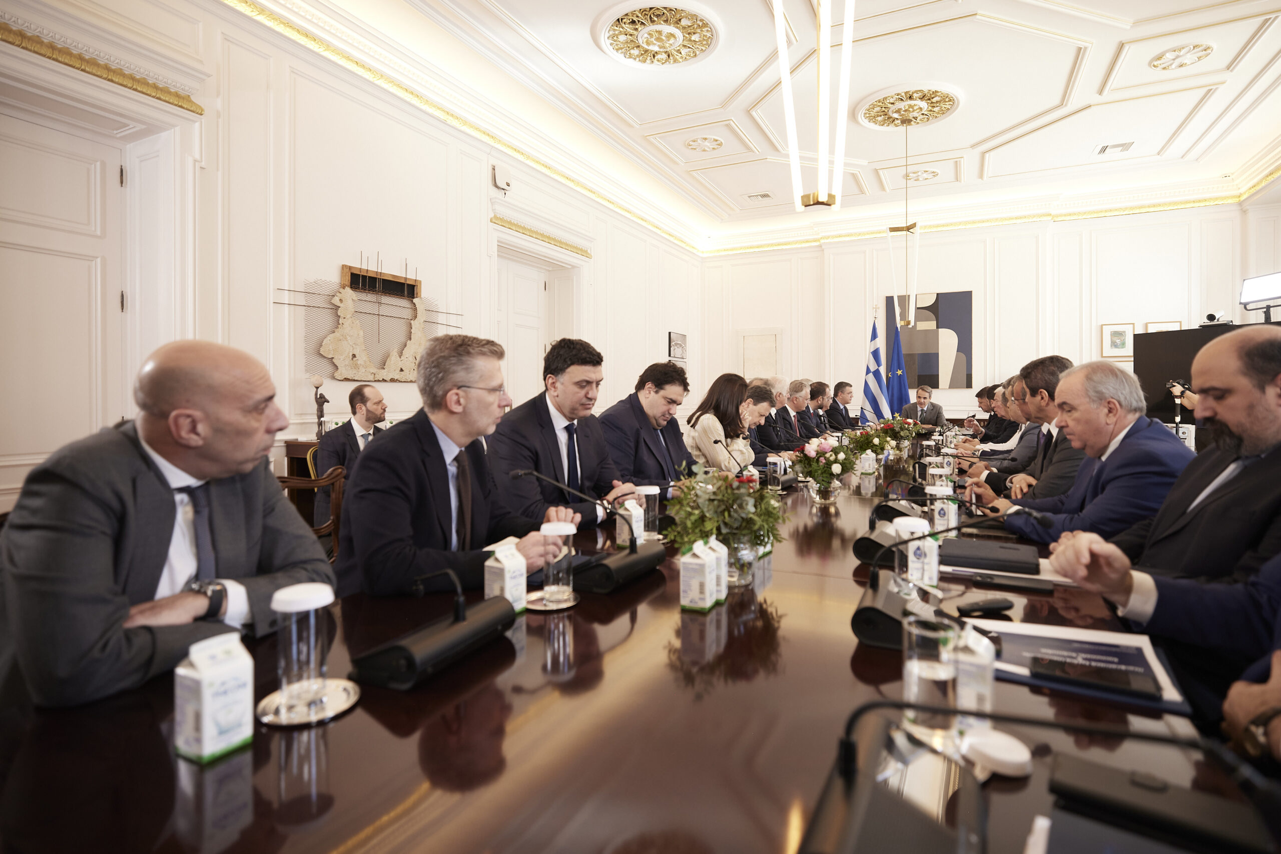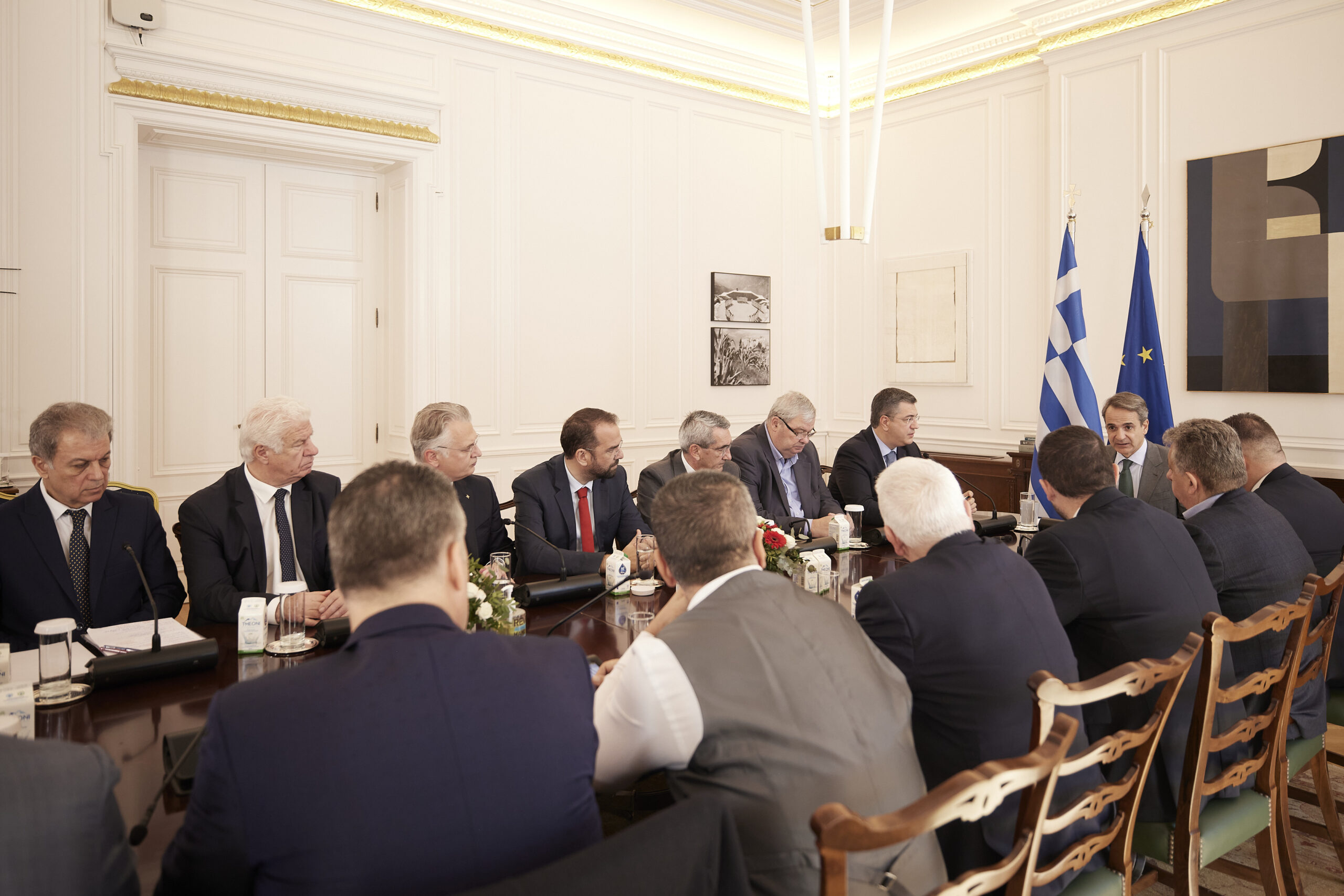 Από την πλευρά ο Πρόεδρος της Ένωσης Περιφερειών Ελλάδας, Περιφερειάρχης Κεντρικής Μακεδονίας, Απόστολος Τζιτζικώστας ανέφερε: «Κύριε Πρόεδρε, εγώ θέλω να σας ευχαριστήσω, να ευχαριστήσω την κυβέρνησή σας και εσάς προσωπικά γιατί ξέρω ότι πιστεύετε βαθιά στην ενδυνάμωση του ρόλου των Περιφερειών και συνολικά στην ενδυνάμωση της αυτοδιοίκησης προς όφελος των πολιτών. Άλλωστε, είναι γνωστό ότι οι Περιφέρειες ειδικά, είναι ο αναπτυξιακός βραχίονας του κράτους. Είναι ένας οργανισμός που έχει από τη μια τις αναπτυξιακές προκλήσεις να αντιμετωπίσει και από την άλλη, φυσικά, τη βελτίωση της καθημερινότητας και της ζωής των συμπολιτών μας. Και αποδείξατε τα τελευταία χρόνια ως κυβέρνηση, κ. Πρόεδρε, ότι πράγματι πιστεύετε σε αυτή την ενδυνάμωση και τα έργα που έγιναν, η συνεργασία που υπήρξε, αποδεικνύουν ότι αυτή η πίστη σας γίνεται με πράξεις και όχι με λόγια. Σήμερα ξεκινάει ένας νέος κύκλος, μία νέα περίοδος κατά την οποία θα πρέπει να πάμε ακόμα παρακάτω. Θα πρέπει να πάμε και να εργαστούμε ακόμη περισσότερο, να εμβαθύνουμε και άλλο αυτή την ουσιαστική συνεργασία. Υπάρχουν ζητήματα ανοιχτά τα οποία θέλουμε να επιλύσουμε και τα οποία θα λειτουργήσουν σε όφελος των τοπικών κοινωνιών και για τα οποία είμαι βέβαιος ότι στην κυβέρνηση θα βρούμε όχι απλά συμπαραστάτες, αλλά και συμμάχους. Θέλω να γνωρίζετε ότι και οι 13 Περιφερειάρχες που είμαστε σήμερα εδώ, άλλοι νεοεκλεγέντες άλλοι επανεκλεγέντες, πιστεύουμε όλοι στο κοινό όραμα να χτίσουμε την Ελλάδα της επόμενης μέρας πάνω στις σωστές μεταρρυθμίσεις που θα επιτρέψουν αφενός στο κράτος να λειτουργεί γρήγορα και ευέλικτα και αποδοτικά και αφετέρου θα βελτιώσει τις συνθήκες όλων των πολιτών σε όλες τις γωνιές της Ελλάδος».