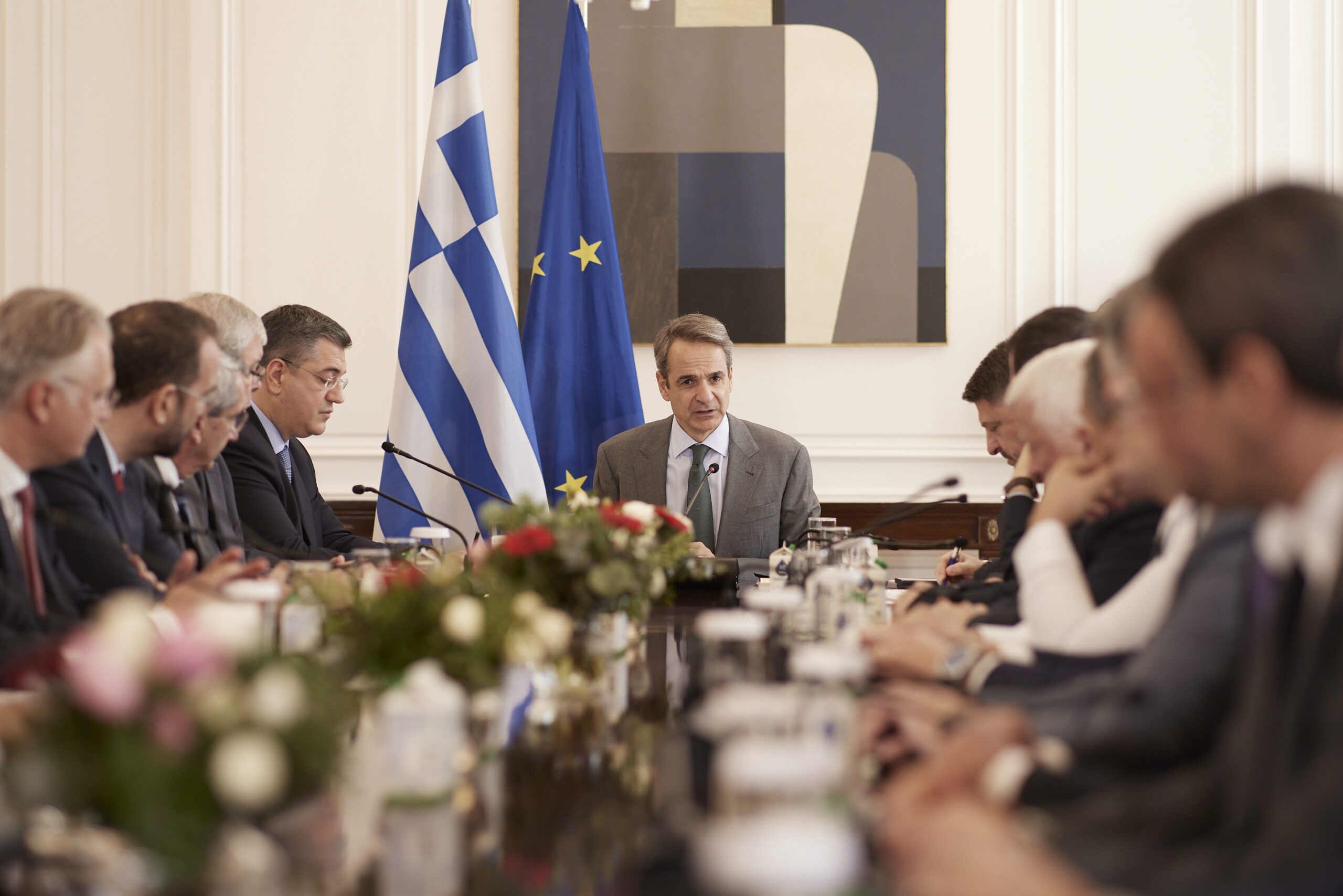 «Συναντιόμαστε σήμερα, λίγες μόλις εβδομάδες μετά την επίσημη ανάληψη των καθηκόντων σας και ακολουθώντας με συνέπεια αυτά τα οποία είχα πει το βράδυ των αυτοδιοικητικών εκλογών, ότι δηλαδή κυβέρνηση και Τοπική Αυτοδιοίκηση, β’ βαθμού εν προκειμένω, έχουν μία υποχρέωση και μόνο, χωρίς δογματισμούς, χωρίς κομματικούς χρωματισμούς: την όσο το δυνατόν καλύτερη συνεργασία μας για τη βελτίωση της ζωής των συμπολιτών μας και την επιδίωξη μίας ποιοτικής περιφερειακής, οικονομικής και κοινωνικής ανάπτυξης. Την ενδυνάμωση της σχέσης των πολιτικών που σχεδιάζουμε και υλοποιούμε, τη μείωση των περιφερειακών ανισοτήτων, αλλά και τη δημιουργία μιας διακριτής αναπτυξιακής στρατηγικής και ταυτότητας για κάθε Περιφέρεια ξεχωριστά. Επίσης, την αποτελεσματικότερη διαχείριση των προκλήσεων από μείζονες εξωγενείς κρίσεις, όπως η κλιματική αλλαγή ή το προσφυγικό ζήτημα, και βέβαια την αποκέντρωση, που αποτελεί μία βασική συνθήκη ισόρροπης ανάπτυξης και ευημερίας κάθε πολίτη, ακόμη κι αν ζει στο πιο απομακρυσμένο σημείο της πατρίδας μας. Το έχουμε πει πολλές φορές, το ασπάζεστε κι εσείς: δεν υπάρχουν Έλληνες διαφορετικών ταχυτήτων και αυτό αφορά τις ανισότητες και εντός των ιδίων των περιφερειών. Για πρώτη φορά πέρυσι θυμάστε ότι επιχειρήσαμε, σε συνεργασία με τις Περιφέρειες -τις προηγούμενες περιφερειακές διοικήσεις που πολλές απ’ αυτές βρίσκονται και σήμερα εδώ στο τραπέζι- μία αναλυτική αποτύπωση όλων των έργων και των συνεκτικών δράσεων που σχεδιάζονται και υλοποιούνται σε 12 Περιφέρειες -η Αττική είναι μία ξεχωριστή κατηγορία- από όλους τους αρμόδιους φορείς. Πρόθεσή μας ήταν να αναδείξουμε τις προτεραιότητες, την ανάγκη ορθολογικής κατανομής πόρων, τα συγκριτικά πλεονεκτήματα αλλά και εκείνα τα πεδία τα οποία απαιτούν μεγαλύτερη στήριξη, μεγαλύτερη ενίσχυση και κοινό σχεδιασμό. Αξιοποιώντας αυτό το εμπεδωμένο πια, θα έλεγα, πλαίσιο συνεργασίας της κυβέρνησης με τις Περιφέρειες και υπό τον συντονισμό της Προεδρίας της Κυβέρνησης, του Υπουργού κ. Σκέρτσου, δημιουργείται ένα συνεκτικό πλέγμα έργων και πολιτικών σε τοπικό, περιφερειακό αλλά και σε εθνικό επίπεδο, έτσι ώστε να εξυπηρετείται η περιφερειακή, οικονομική και κοινωνική ανάπτυξη με την επικαιροποίηση των περιφερειακών σχεδίων, κάτι στο οποίο συμβάλλετε και εσείς ήδη. Ταυτόχρονα, ενδυναμώνουμε και πυκνώνουμε τη μεταξύ μας συνεργασία με τη βοήθεια ενός σταθερού μηχανισμού παρακολούθησης των περιφερειακών σχεδίων αλλά και της εξέλιξης όλων των έργων που υπάγονται στην εποπτεία της Προεδρίας της Κυβέρνησης. Αυτό πάντα σε συνεργασία με όλα τα συναρμόδια Υπουργεία και θα έλεγα ειδικά τα Υπουργεία Οικονομικών, Εσωτερικών και Υποδομών. Ο στόχος μας μέσω των περιφερειακών αναπτυξιακών σχεδίων είναι, όπως είπα και πριν, η διαμόρφωση μιας συνεκτικής στρατηγικής περιφερειακής, οικονομικής αλλά και κοινωνικής ανάπτυξης. Ενός εθνικού παραγωγικού μοντέλου που θα εξασφαλίζει τη βιωσιμότητά του απέναντι σε τρέχουσες αλλά και απέναντι σε διαβλεπόμενες προκλήσεις και κρίσεις. Μπορούμε να επικεντρώσουμε τις πολιτικές μας σε ειδικότερα πεδία, όπως η ορεινότητα, όπως η νησιωτικότητα, αλλά και σε συγκεκριμένους τομείς πολιτικής, όπως η απασχόληση, η πολιτική προστασία, οι επενδυτικές ευκαιρίες, η επιστροφή των νέων, η ενίσχυση των κοινωνικών πολιτικών. Αλλά η ενδυνάμωση των Περιφε