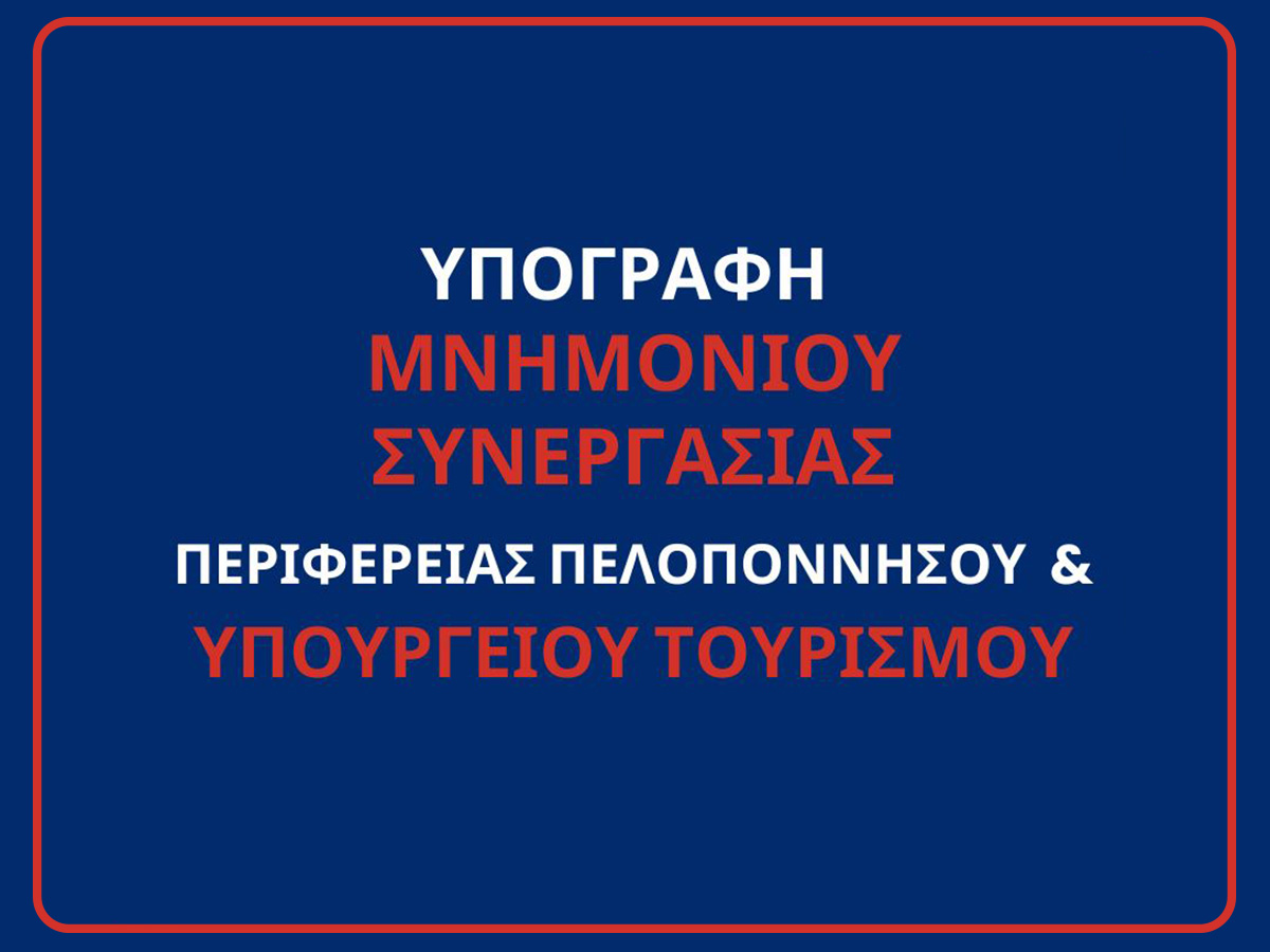 Ένα σημαντικό βήμα για την ενίσχυση του τουριστικού κλάδου στην Περιφέρεια Πελοποννήσου πραγματοποιήθηκε με την υπογραφή Μνημονίου Συνεργασίας μεταξύ της Περιφέρειας και του Υπουργείου Τουρισμού. Το Μνημόνιο αφορά τη δημιουργία ενός Περιφερειακού Οργανισμού Διαχείρισης και Προώθησης Προορισμών (Destination Management and Marketing Organization – DMMO) και την ίδρυση του Περιφερειακού Παρατηρητηρίου Βιώσιμης Τουριστικής Ανάπτυξης Πελοποννήσου, με χρηματοδότηση που αγγίζει τα 650.000 ευρώ μέσω του Ταμείου Ανάκαμψης.