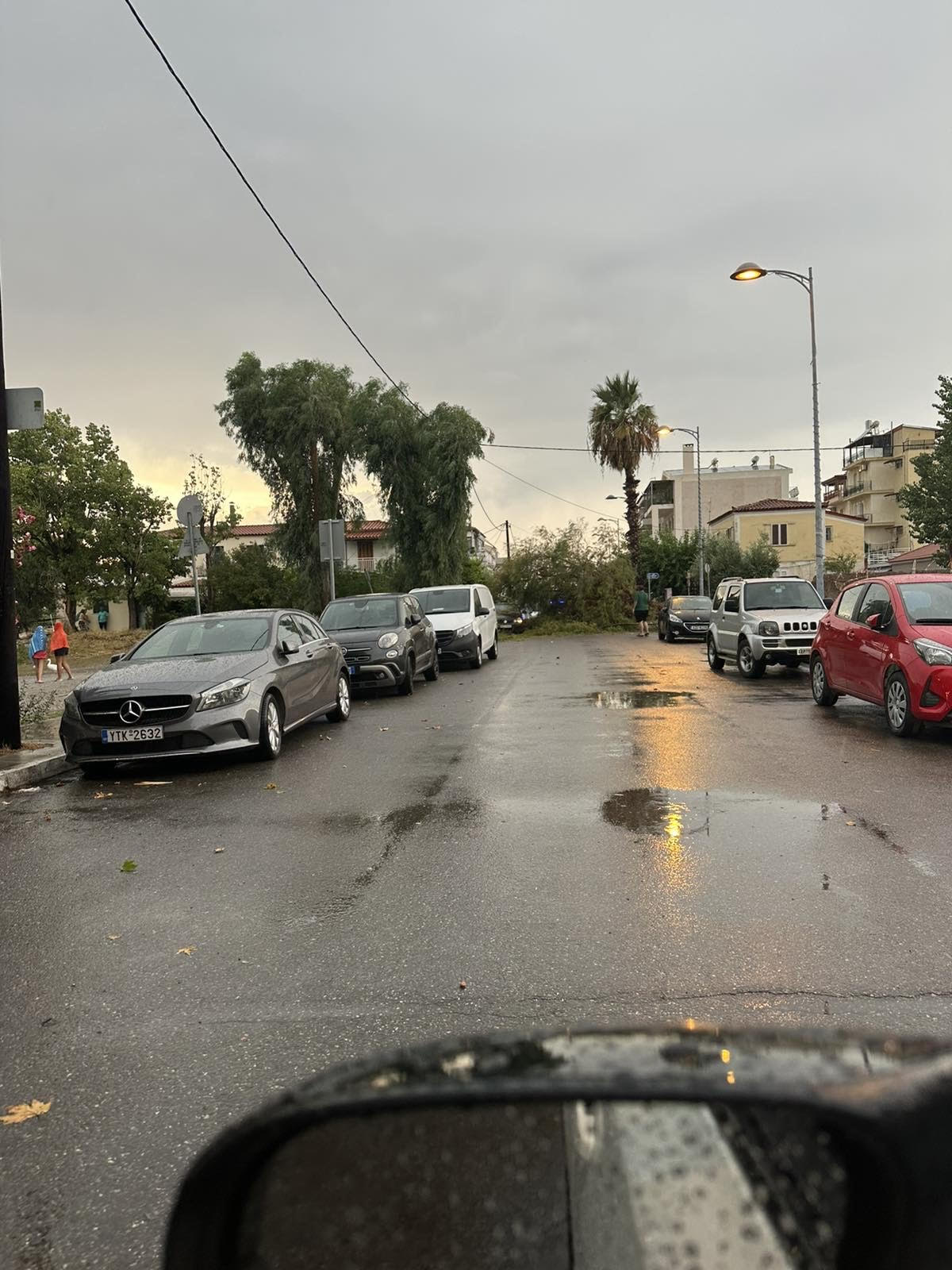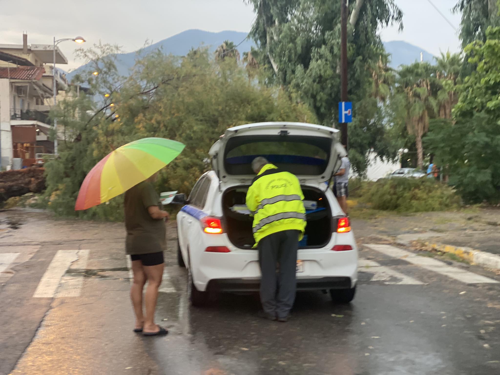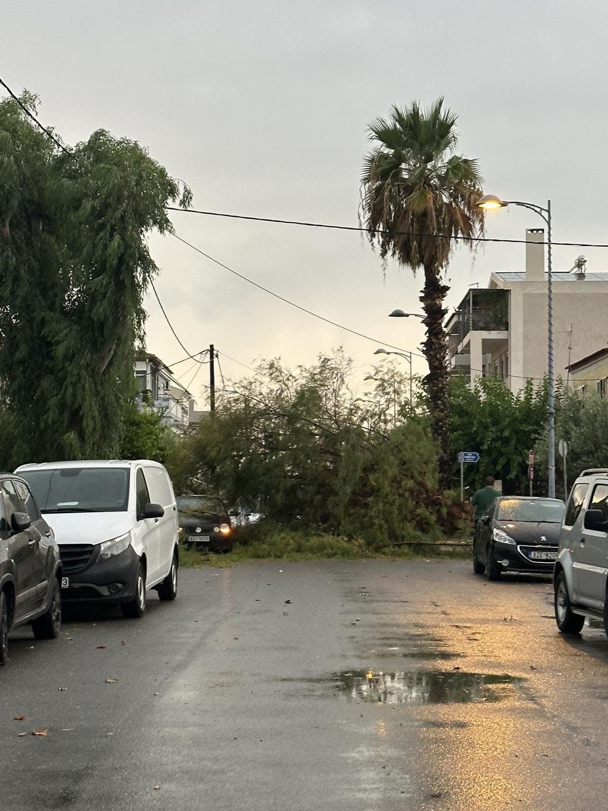 Ειδικότερα στην οδό Σαλαμίνος, δέντρο επί του πεζοδρομίου έπεσε πάνω σε ΙΧ αυτοκίνητο που εκείνη την ώρα περνούσε από το σημείο.