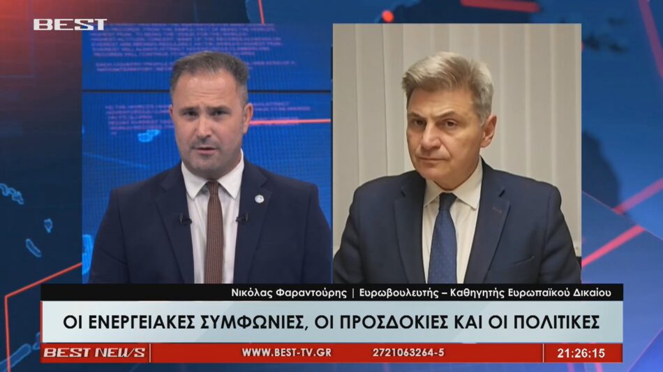 «Καλοδεχούμενο το επενδυτικό ενδιαφέρον, αλλά να δούμε κάτι χειροπιαστό» σημείωσε ο Ευρωβουλευτής Νικόλας Φαραντούρης αναφορικά με τις προσδοκίες που υπάρχουν μετά και τις συμφωνίες που έτρεξαν την περασμένη εβδομάδα, τονίζοντας παράλληλα πως επειδή στη χώρα μας έχουμε ακούσει αρκετές φορές πολλά πράγματα «δεν θα πρέπει να φθάσουμε σε ένα σημείο που να θυμίζει την ιστορία το βοσκό με το λύκο», όπως συμπλήρωσε σχηματικά. Ο Καθηγητής Ευρωπαϊκού Δικαίου με ιδιαίτερη γνώση στα ενεργειακά θέματα αξιολόγησε τα νέα δεδομένα για τις συζητήσεις εξορύξεων στο βόρειο Ιόνιο με το μνημόνιο συναντίληψης αναφέροντας πως «δεν υπάρχει κάποια απόφαση, ούτε κάποια νομικά δεσμεVIDEO)υτικά κείμενα για την επόμενη φάση. Υπάρχει ένα ενδιαφέρον», για να θυμίσει εδώ τα όσα είχαν γίνει με τις εταιρείες να… φεύγουν και να έρχονται στο παρελθόν ελέω των δικών μας πολιτικών επιλογών. «Γιατί να ξέρετε το να λέμε… βρήκαμε πετρέλαιο, κόβουμε κορδέλα, γίναμε κόμβος είναι εύκολο. Από εκεί και πέρα το έχουμε ακούσει πολλές φορές και θυμίζει η ιστορία τον βοσκό και τον λύκο». Ο κ. Φαραντούρης πρόσθεσε πως το δεύτερο ζήτημα είναι σε τι τιμή «θα κλειδώσουν αυτές οι συμφωνίες υγροποιημένου φυσικού αερίου και αν θα ωφελήσουν την ελληνική αγορά…», συμπληρώνοντας ως τρίτο σημείο πως «δεν πρέπει να είμαστε μόνο μεταπράτες της ιστορίας. Δηλαδή να μην παίρνουμε και να μεταφέρουμε αέριο για τρίτους. Ενώ στην πραγματικότητα η ελληνική αγορά συνεχίζει να έχει υψηλές τιμές και μεγάλη ενεργειακή εξάρτηση». Εδώ ο Ευρωβουλευτής και ως μέλος της αρμόδιας Επιτροπής Ασφάλειας και Άμυνας πρόσθεσε πως «δεν μου αρέσουν οι άκαιροι πανηγυρισμοί και οι μεγάλες κουβέντες χωρίς αντίκρισμα. Περιμένω λοιπόν σε πρακτικό αντίκτυπο αποτύπωμα για την τσέπη μας και για την ασφάλεια της χώρας όλα αυτά τα πράγματα».