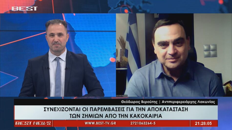 Αναφορικά με την αποκατάσταση των ζημιών από την πρόσφατη κακοκαιρία είπε «Οι ενέργειες μας ήταν άμεσες με συνεργεία βρεθήκαμε στα σημεία που παρουσιάστηκαν τα προβλήματα δώσαμε άμεσα πρόσβασης στο δίκτυο. Έχουν καταγραφεί οι βλάβες σε υποδομές, όπως γεφύρια στο δίκτυο αρμοδιότητας της Περιφέρειας και έχουν γίνει αιτήματα για χρηματοδότηση».