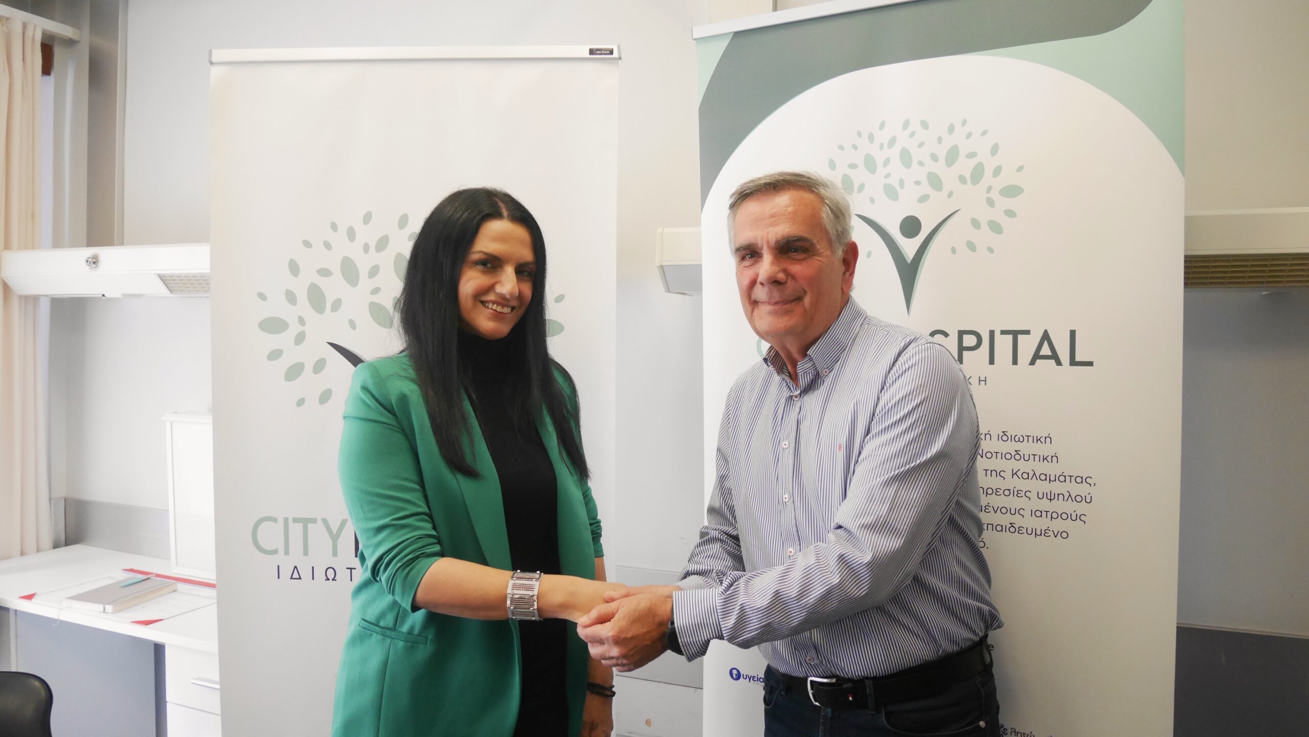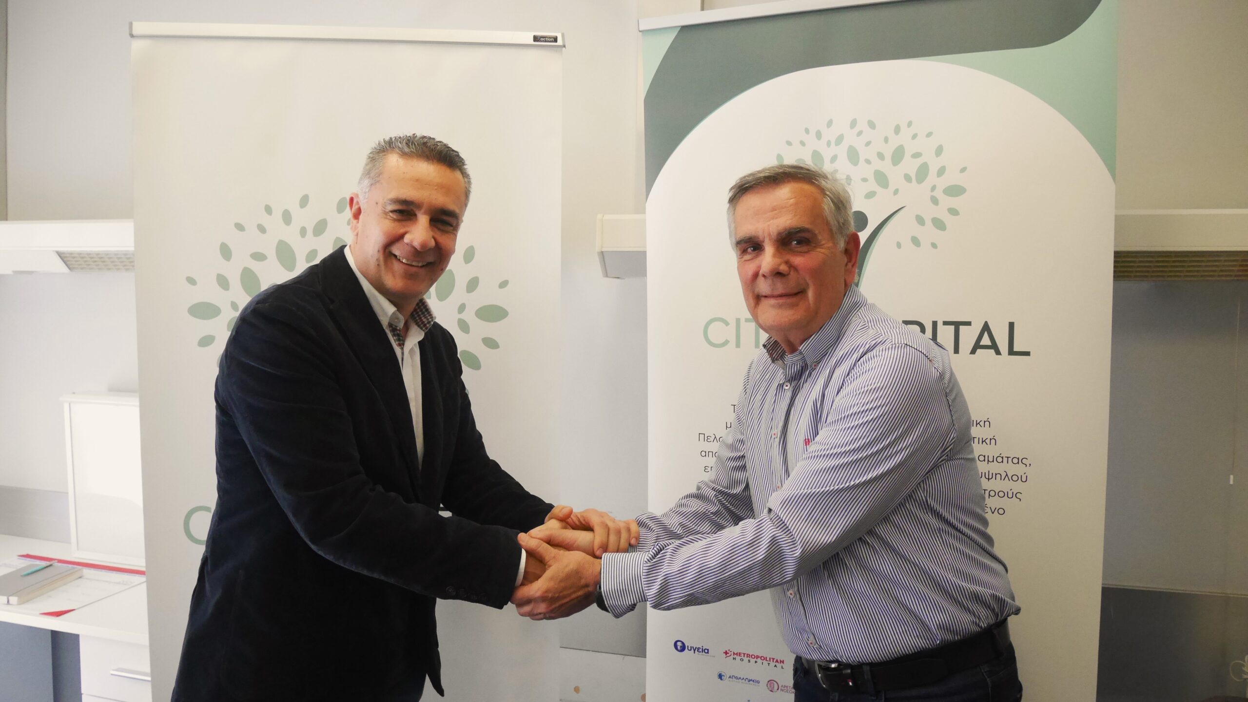 Ο επιστημονικός διευθυντής της City Hospital Βασίλειος Τζωρτζάκης καλωσορίζει τον διευθυντή της χειρουργικής κλινικής Παναγιώτη Γιαννόπουλο